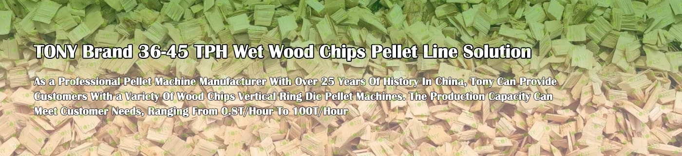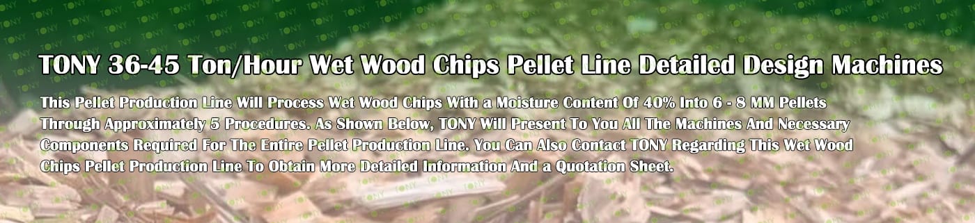 TONY Brand 36-45Ton/Hour Wet Wood Chips Pellet Manufacturing Plant can take wet wood chips, various types of wood - related biomass materials, such as wood pallets ,branches, wood logs, and wood shavings. After pretreatment and processing, wet wood chips is solidified into high - density wood pellet fuel. This fuel is an ideal substitute for coal and oil and plays a role in energy conservation and emission reduction. At present, it has been widely used in regions rich in wood resources.