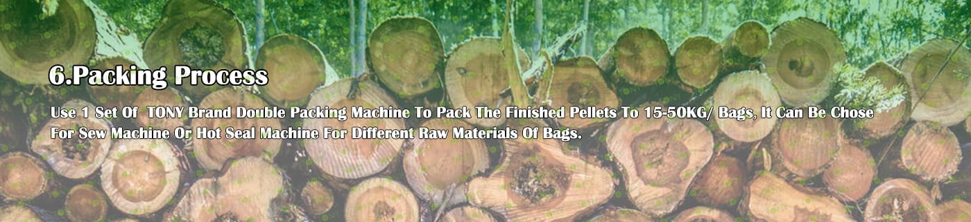6. Main Equipment: Comprehensive Chipper TPC1000-90KW, Dual Shaft Hammer Mill-TFS65*100-110*2kw, Rotary Drum Dryer-2*24m, TONY Pellet Machine TYJ760 - Ⅲ - 200kw, Pellet Cooler, Double Packing Machine and Belt Conveyors