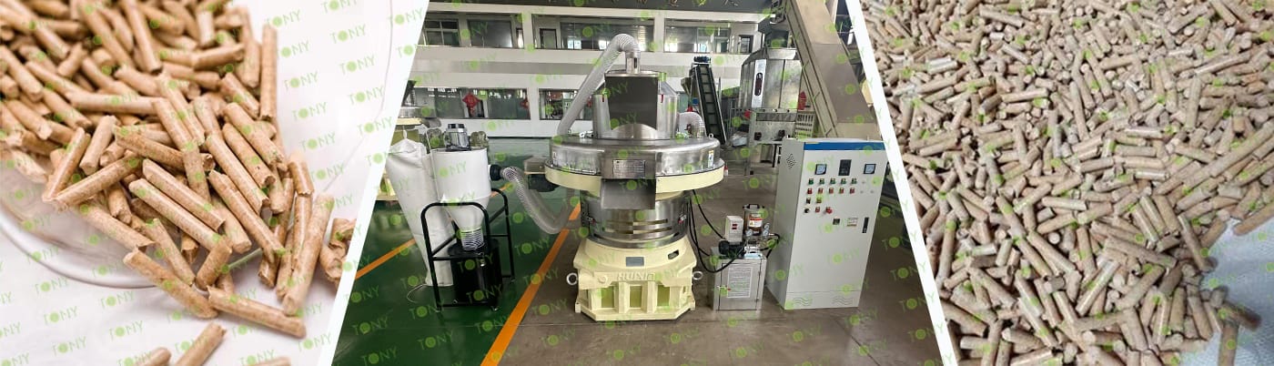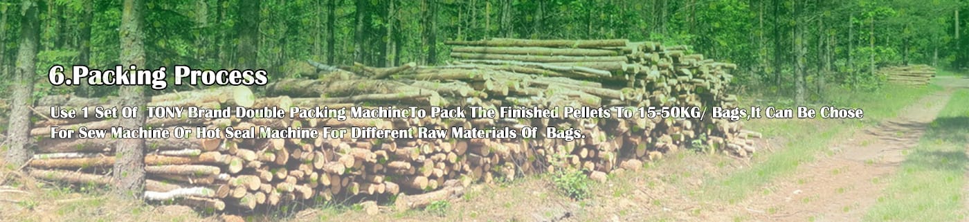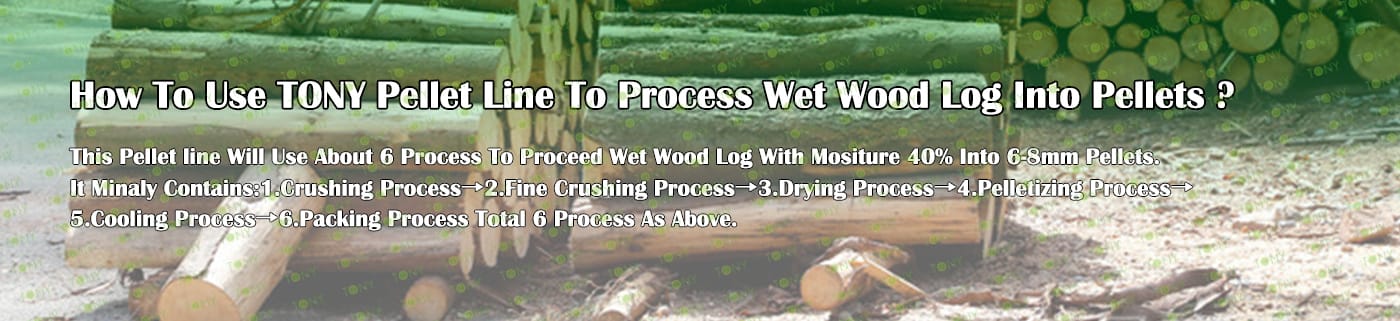 How to use the TONY pellet production line to make pellets from wet wood log? The process mainly includes the following steps and equipment: 1. Use TONY comprehensive wood chipper to cut wet wood logwith a diameter of less than 20 cm into wood chips 25 - 55 mm in length. 2. Use TONY dual shaft hammer mill to crush the 25-55 mm wood chips into 8-14 mm sawdust. 3. Use TONY rotary drum dryer to dry the sawdust with a 40% moisture content down to a moisture content of 10%-15%. 4. Use TONY vertical ring die pellet machine to produce pellets with a diameter of 6-8 mm. 5. Use TONY galvanized cooler to cool the pellets from 80-90°C to 20-30°C. 6. Use TONY double packing machine to pack the pellets into bags, each weighing 15-50 kg. For more detailed information and quotations, you can contact TONY. TONY can provide all the |