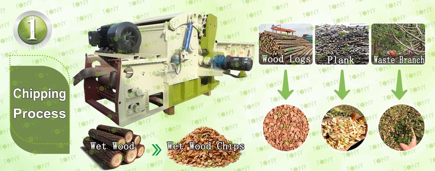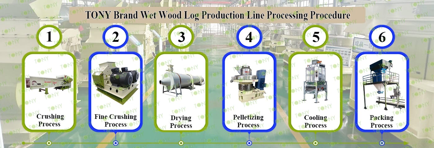 3.TONY Brand 5.5-6.5Ton/Hour Wet Wood Log Pellet Line Project Process
