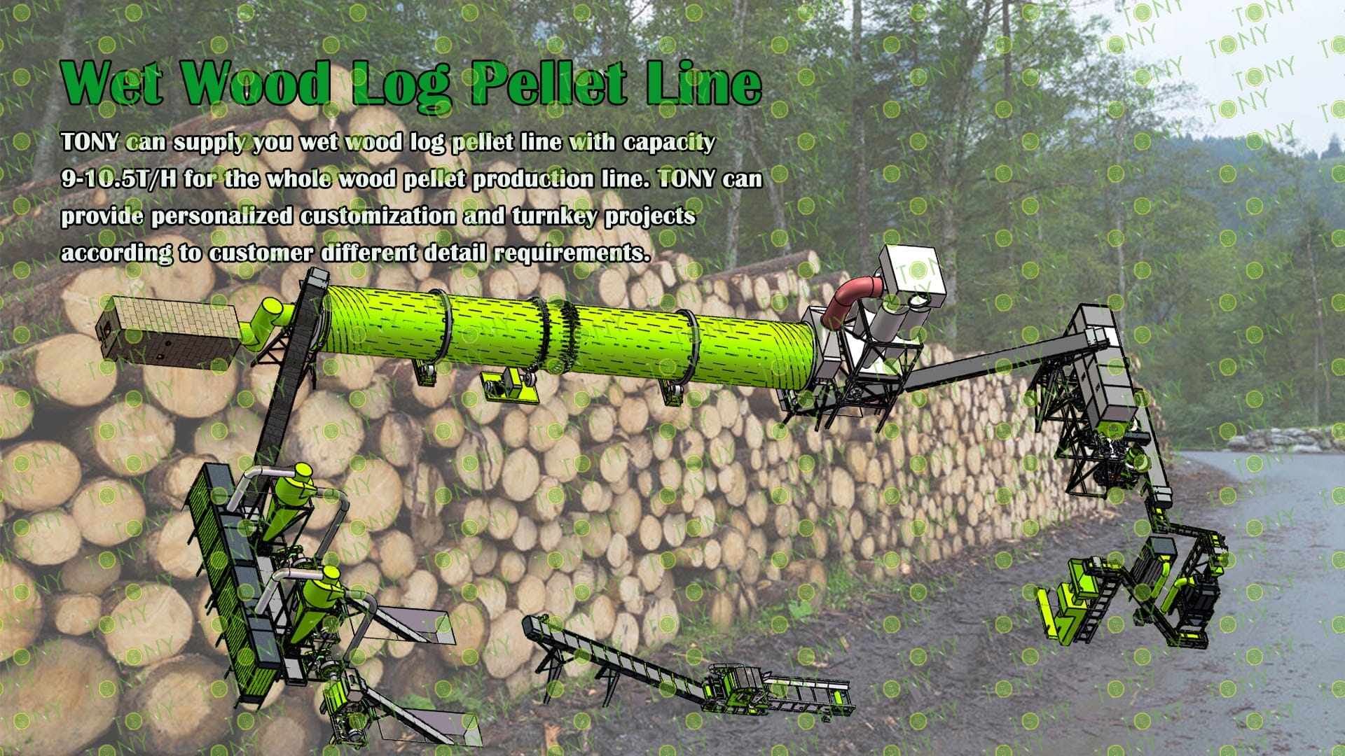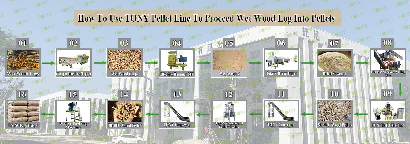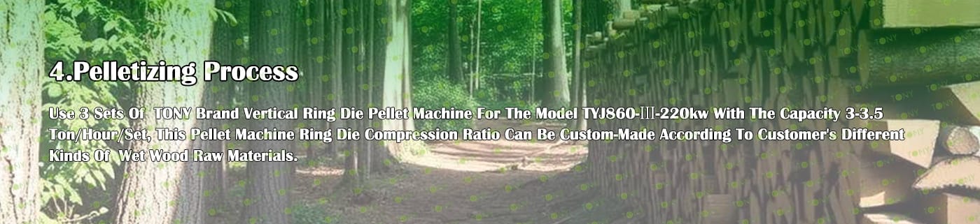 3.TONY Brand 9-10.5Ton /Hour Wet Wood Log Pellet Line Project Process