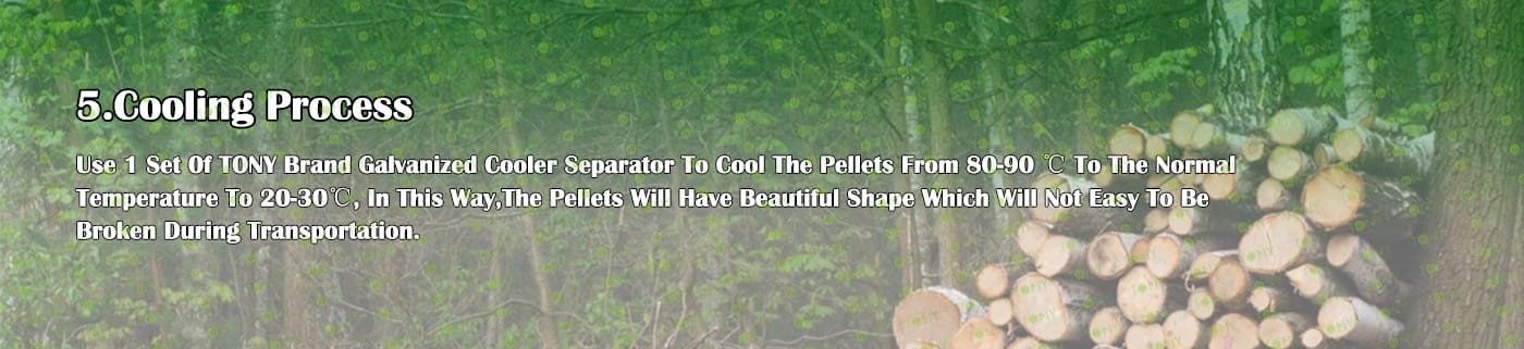 4.Main Machine: Comprehensive Chipper, Hammer Mill,Rotary Drum Dryer,TONY Pellet Machine TYJ860-Ⅲ-220KW, Pellet Cooler, Packing Machine And Belt Conveyors