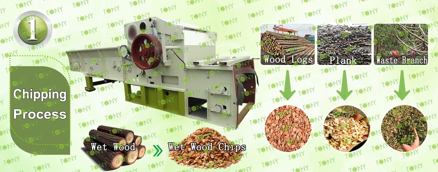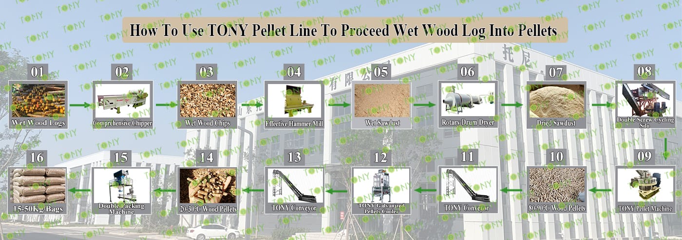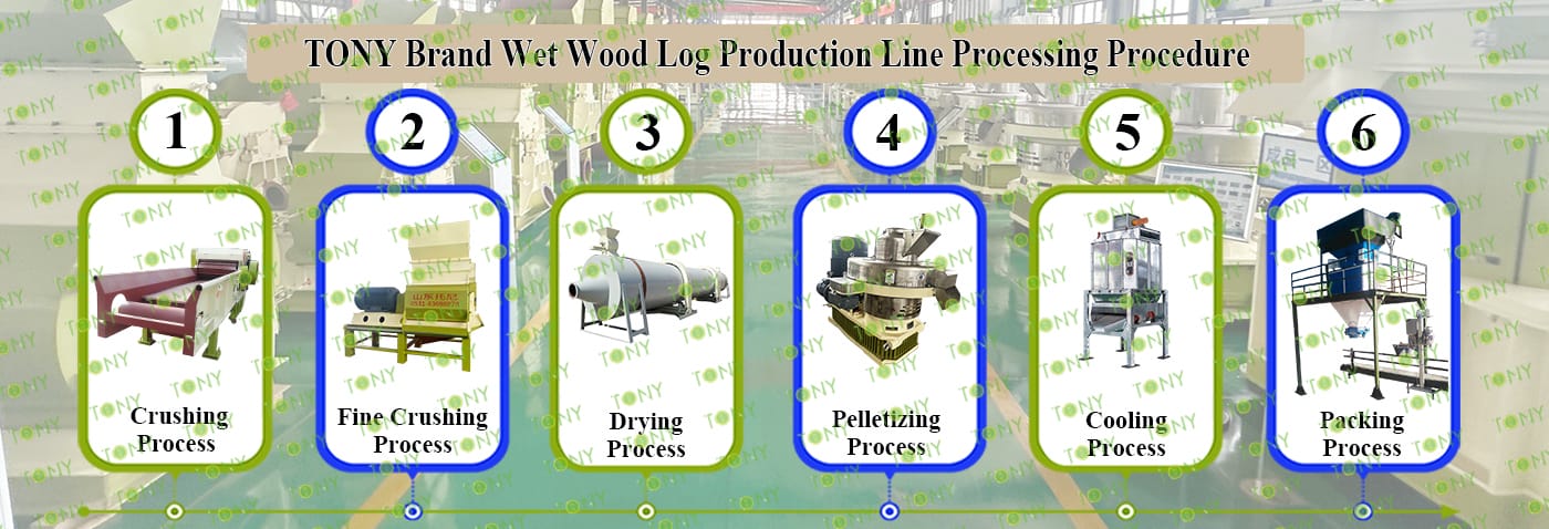 3.TONY Brand 6-7Ton/Hour Wet Wood Log Pellet Line Project Process
