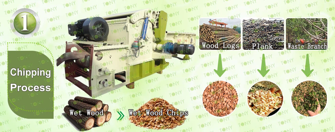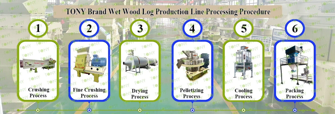 3.TONY Brand 6-7.5 Ton /Hour Wet Wood Log Pellet Line Project Process