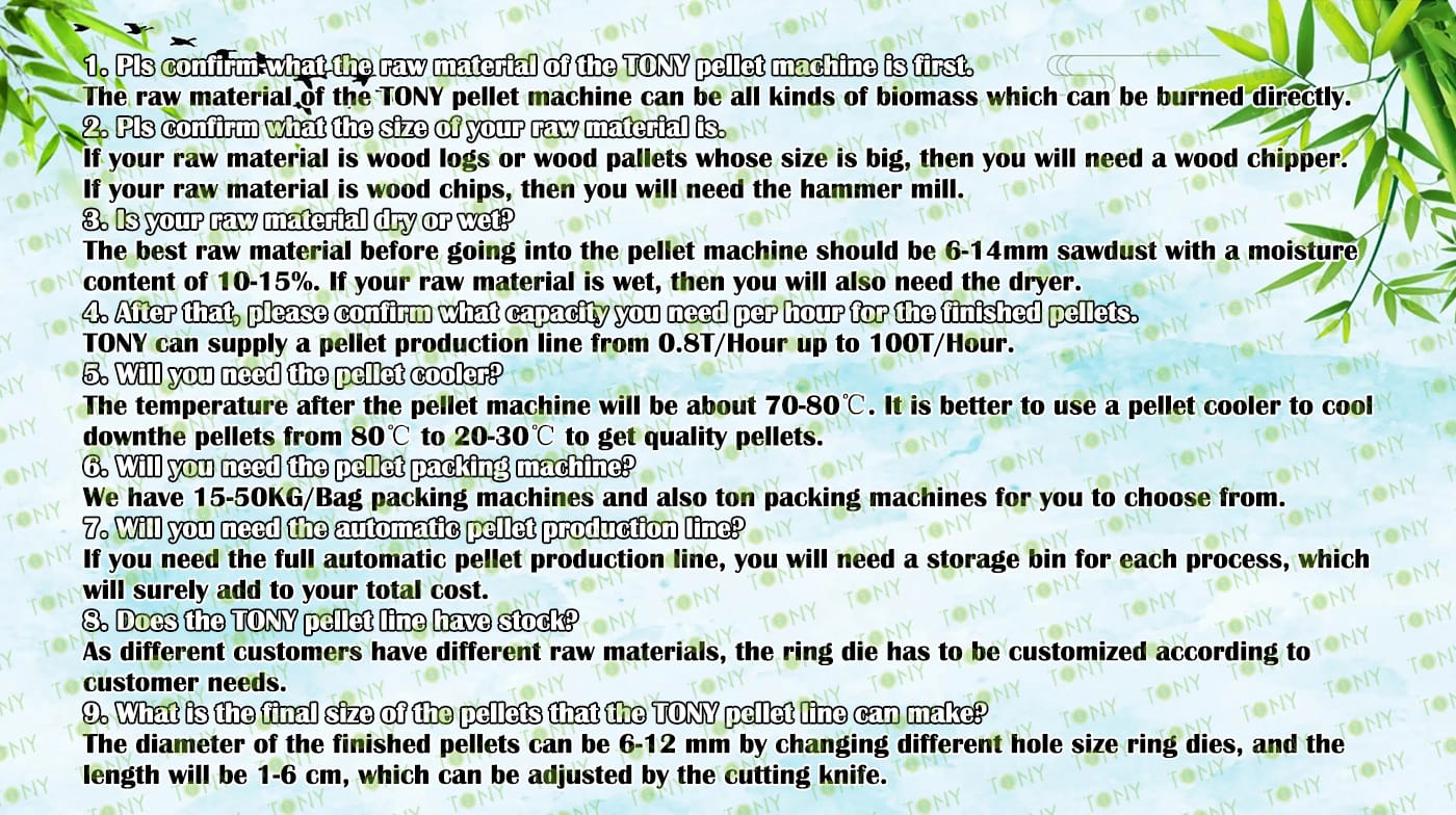 | Next, TONY Will Introduce To You All The Necessary Machinery That Will Be Used For The Whole Pellet Production Line. Some Machines Can Be Custom - Made By Customers According To Different Customers' Detailed Demands. Contact TONY For More Details, Including Quotation And Layout. | |||