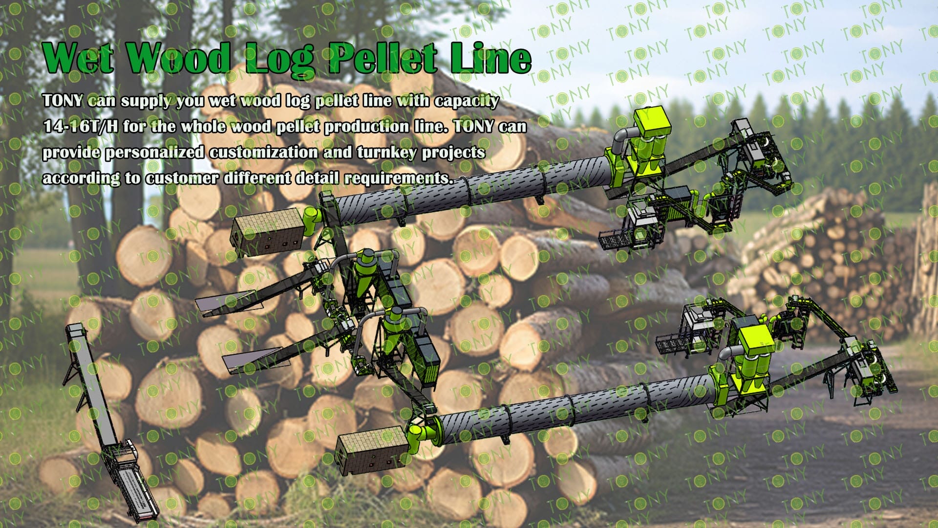 3.TONY Brand 14-16Ton /Hour Wet Wood Log Pellet Line Project Process