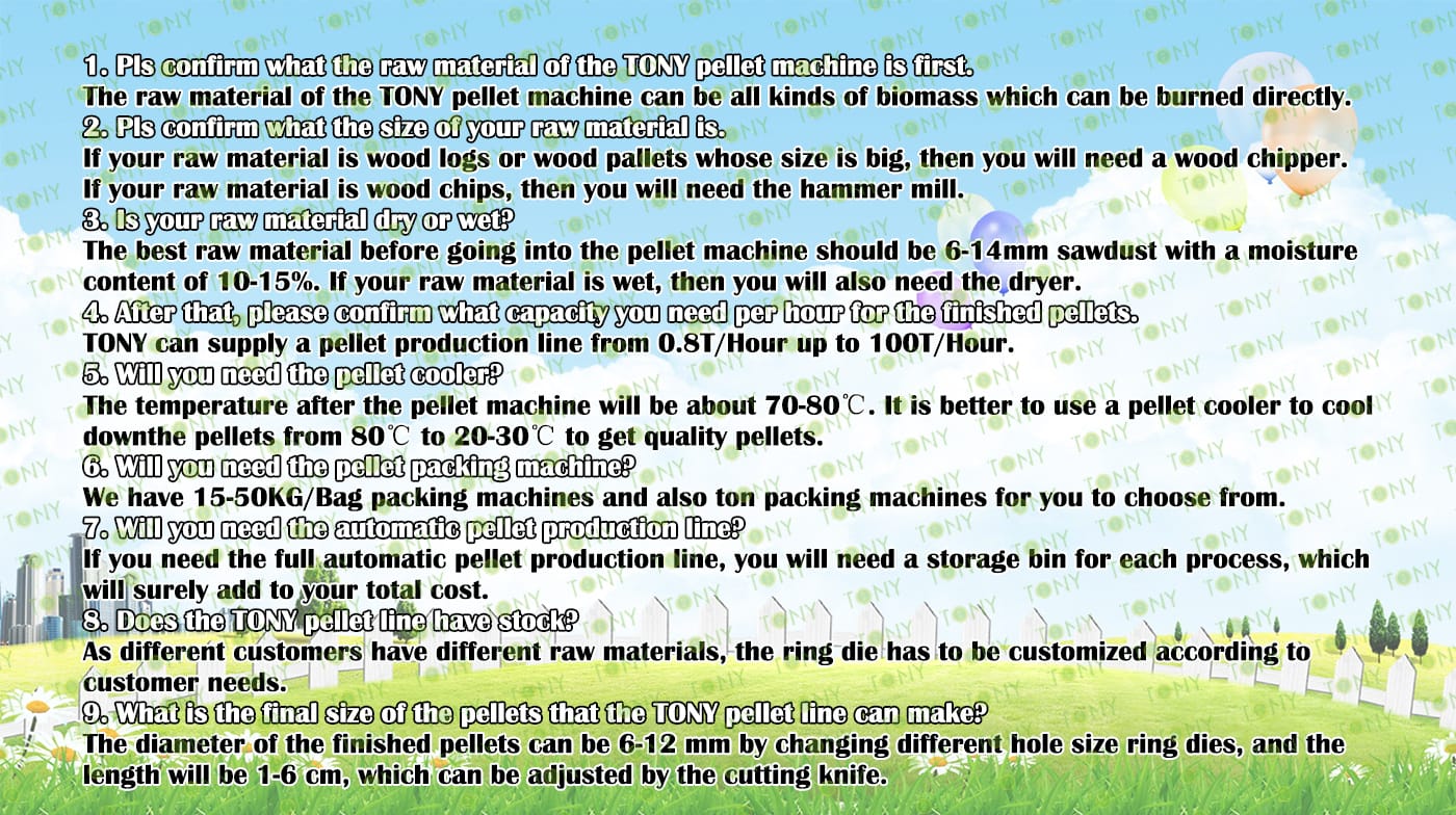| Next, TONY Will Introduce To You All The Necessary Machinery That Will Be Used For The Whole Pellet Production Line. Some Machines Can Be Custom - Made By Customers According To Different Customers' Detailed Demands. Contact TONY For More Details, Including Quotation And Layout. | |||