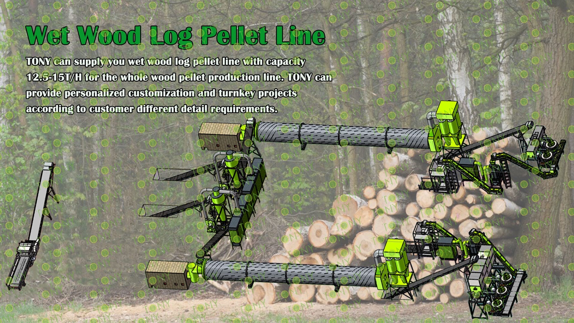 3.TONY Brand 12.5-15 Ton /Hour Wet Wood Log Pellet Line Project Process