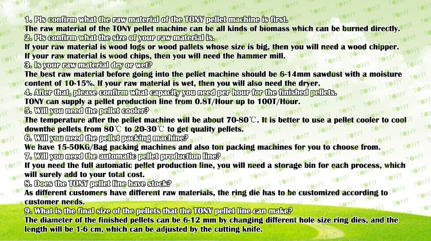| Next, TONY Will Introduce To You All The Necessary Machinery That Will Be Used For The Whole Pellet Production Line. Some Machines Can Be Custom - Made By Customers According To Different Customers' Detailed Demands. Contact TONY For More Details, Including Quotation And Layout. | |||