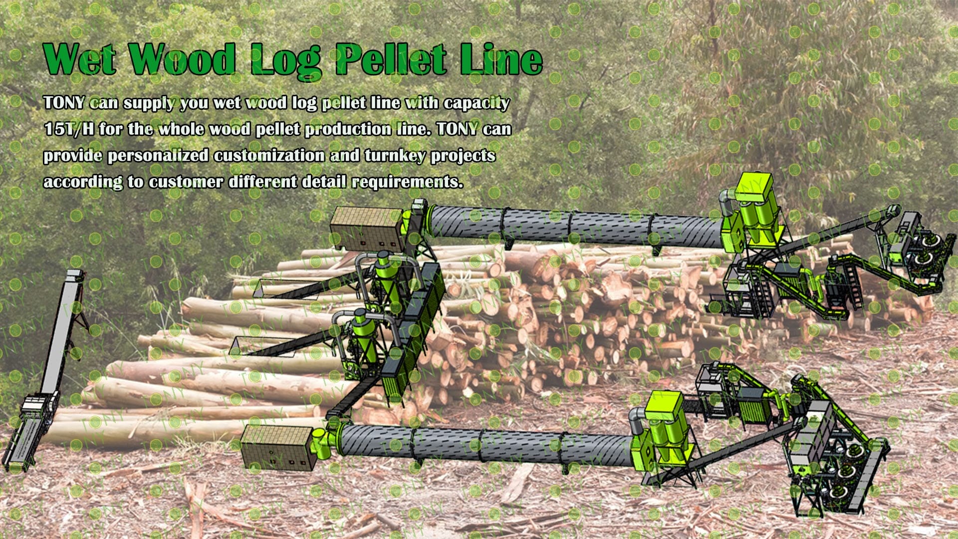3.TONY Brand 15Ton /Hour Wet Wood Log Pellet Line Project Process