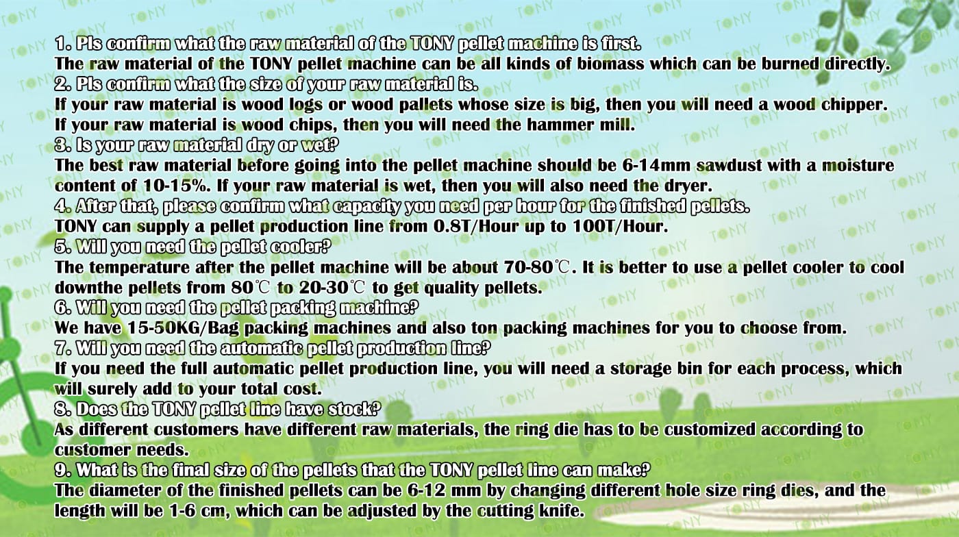 | Next, TONY Will Introduce To You All The Necessary Machinery That Will Be Used For The Whole Pellet Production Line. Some Machines Can Be Custom - Made By Customers According To Different Customers' Detailed Demands. Contact TONY For More Details, Including Quotation And Layout. | |||