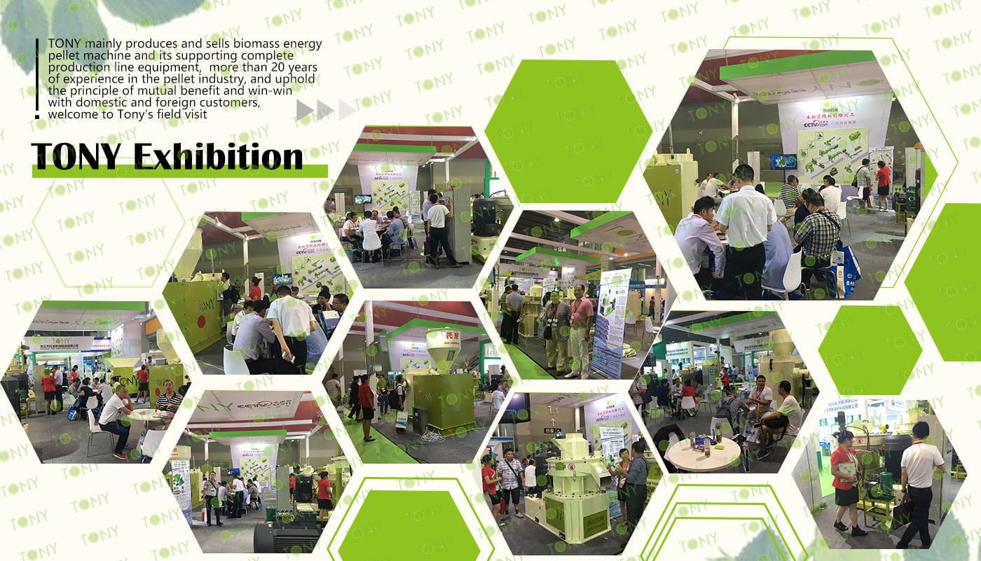 4.Main Machine: Comprehensive Chipper,Hammer Mill,Large Hydraulic Storage Silo,Rotary Drum Dryer,TONY Pellet MachineTYJ860-III-280KW,Pellets Cooler,Packing Machine And Belt Conveyors