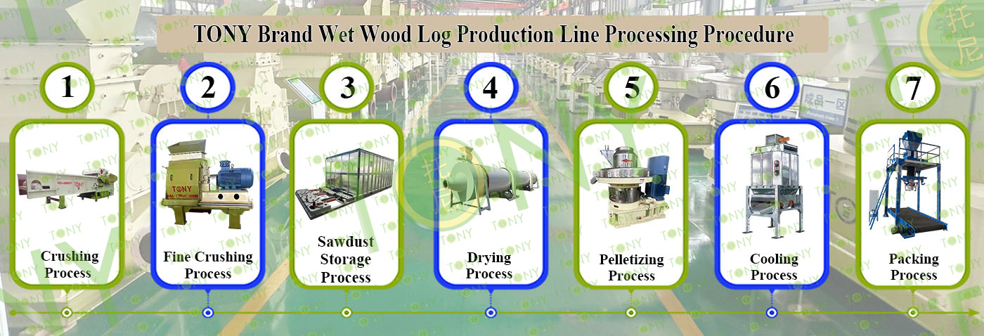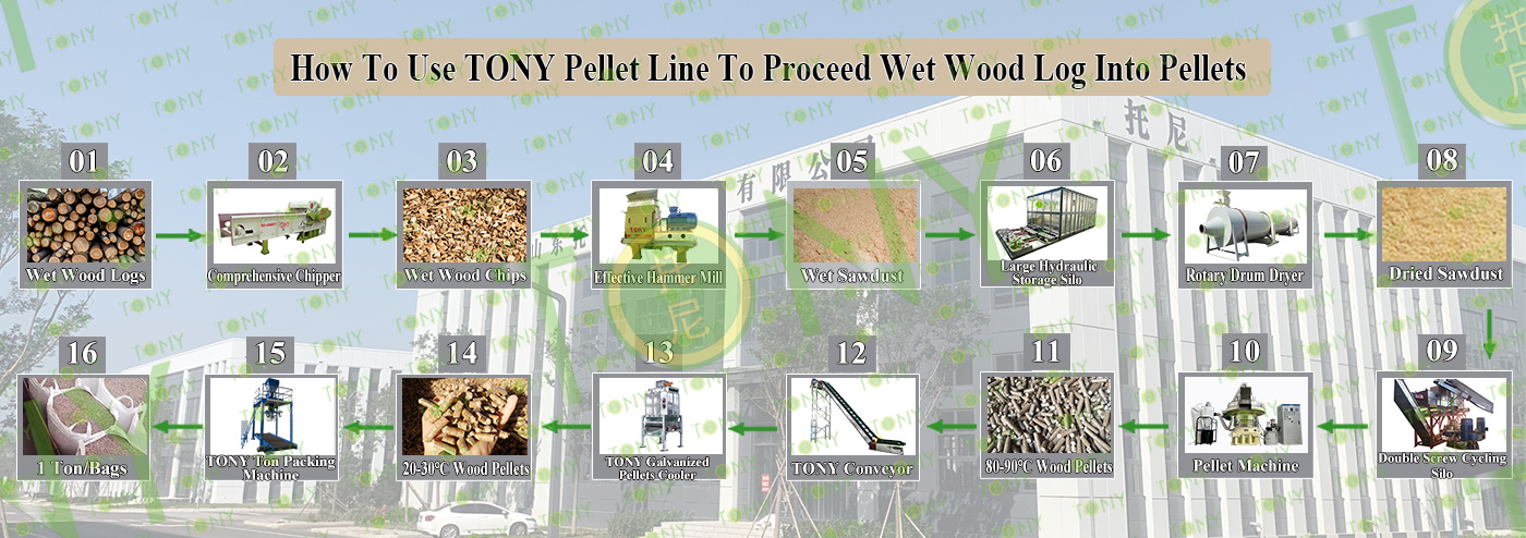 3.TONY Brand 18Ton/Hour Wet Wood Log Pellet Line Project Process