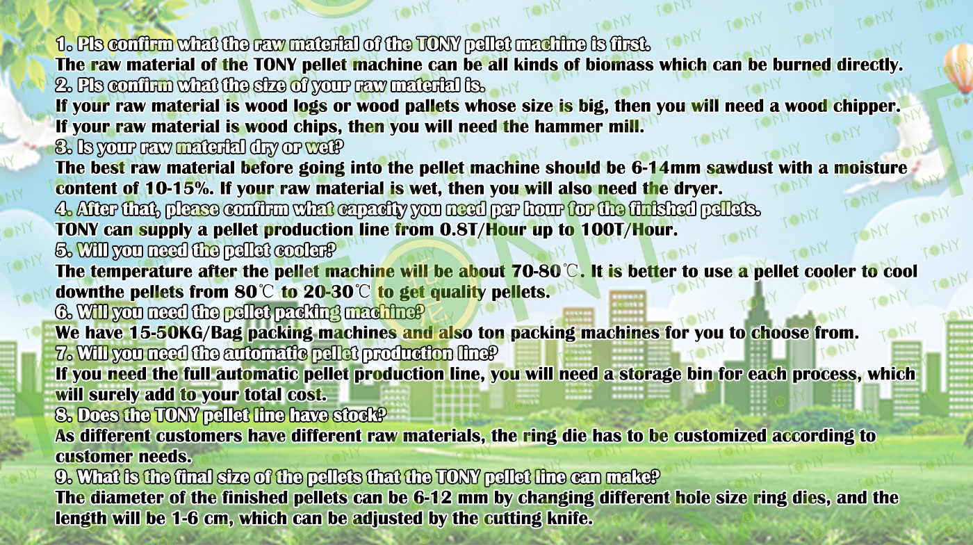 Next, TONY Will Introduce To You All The Necessary Machinery That Will Be Used For The Whole Pellet Production Line. Some Machines Can Be Custom - Made By Customers According To Different Customers' Detailed Demands. Contact TONY For More Details, Including Quotation And Layout. |