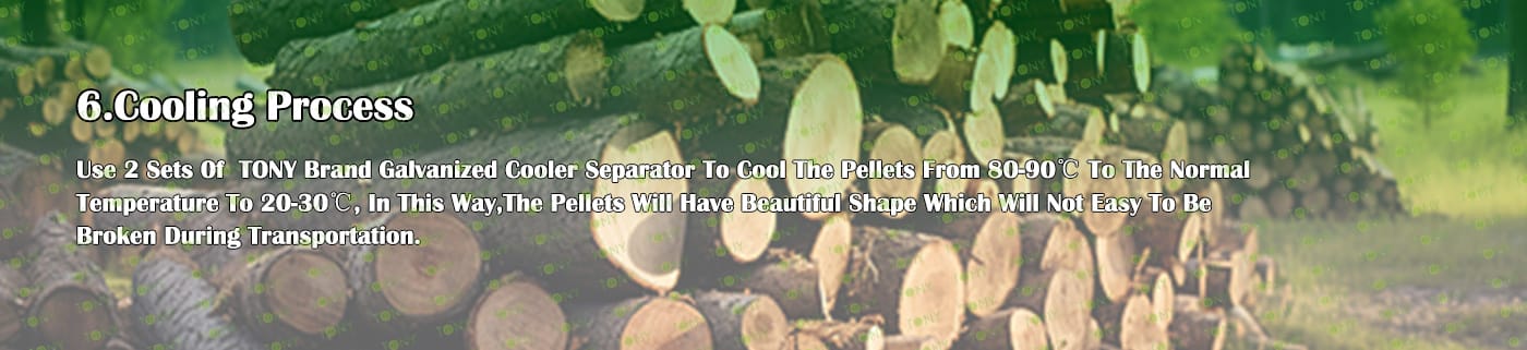 4.Main Machine: Comprehensive Chipper,Hammer Mill, Large Hydraulic Storage Silo,Rotary Drum Dryer,TONY Pellet MachineTYJ760-Ⅲ-160KW,Pellets Cooler,Packing Machine And Belt Conveyors