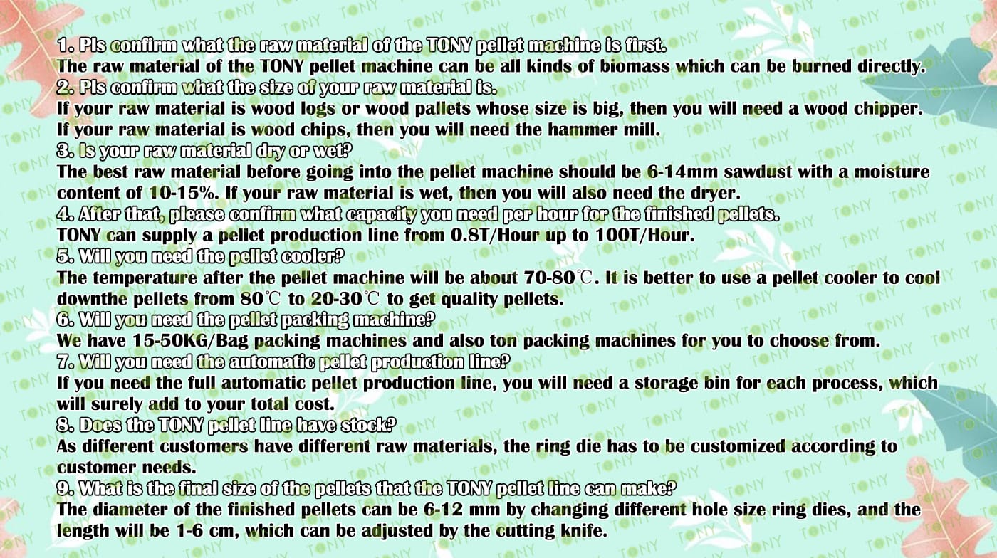 | Next, TONY Will Introduce To You All The Necessary Machinery That Will Be Used For The Whole Pellet Production Line. Some Machines Can Be Custom - Made By Customers According To Different Customers' Detailed Demands. Contact TONY For More Details, Including Quotation And Layout. | |||