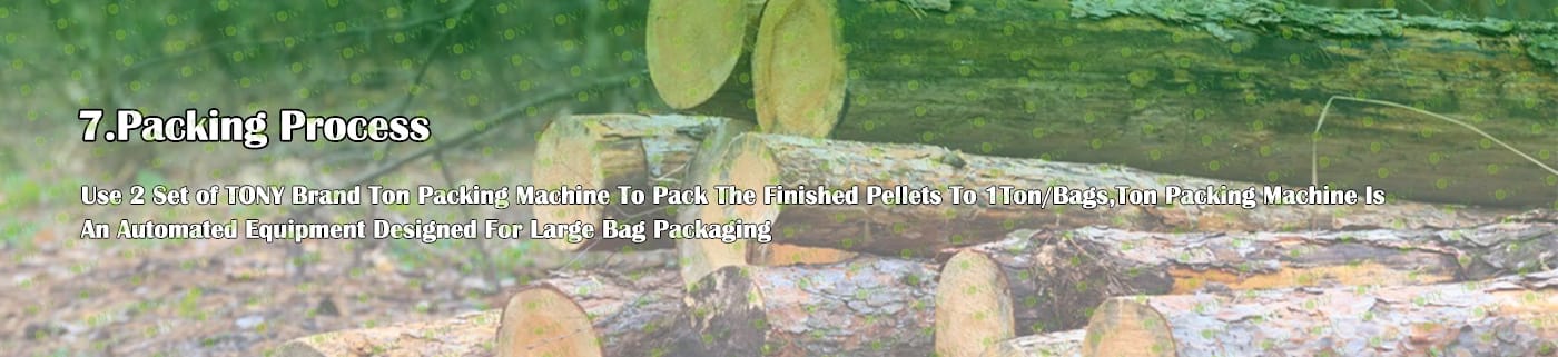 6. Main Equipment: Comprehensive Chipper TPC1400-600-200KW, Effective Hammer Mill-TFD85*220-220KW, TONY Large Hydraulic Storage Silo,Rotary Drum Dryer-2*24m, TONY Pellet Machine TYJ860-Ⅲ-280KW, Pellet Cooler, Ton Packing Machine and Belt Conveyors