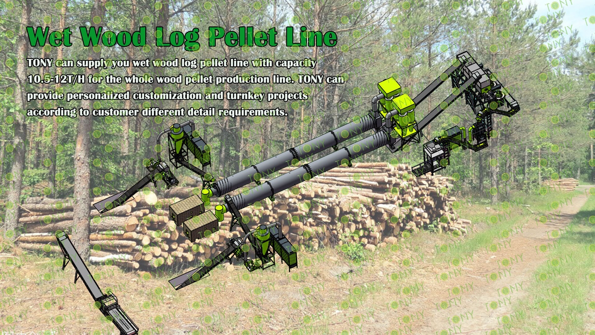 3.TONY Brand 10.5-12Ton/Hour Wet Wood Log Pellet Line Project Process