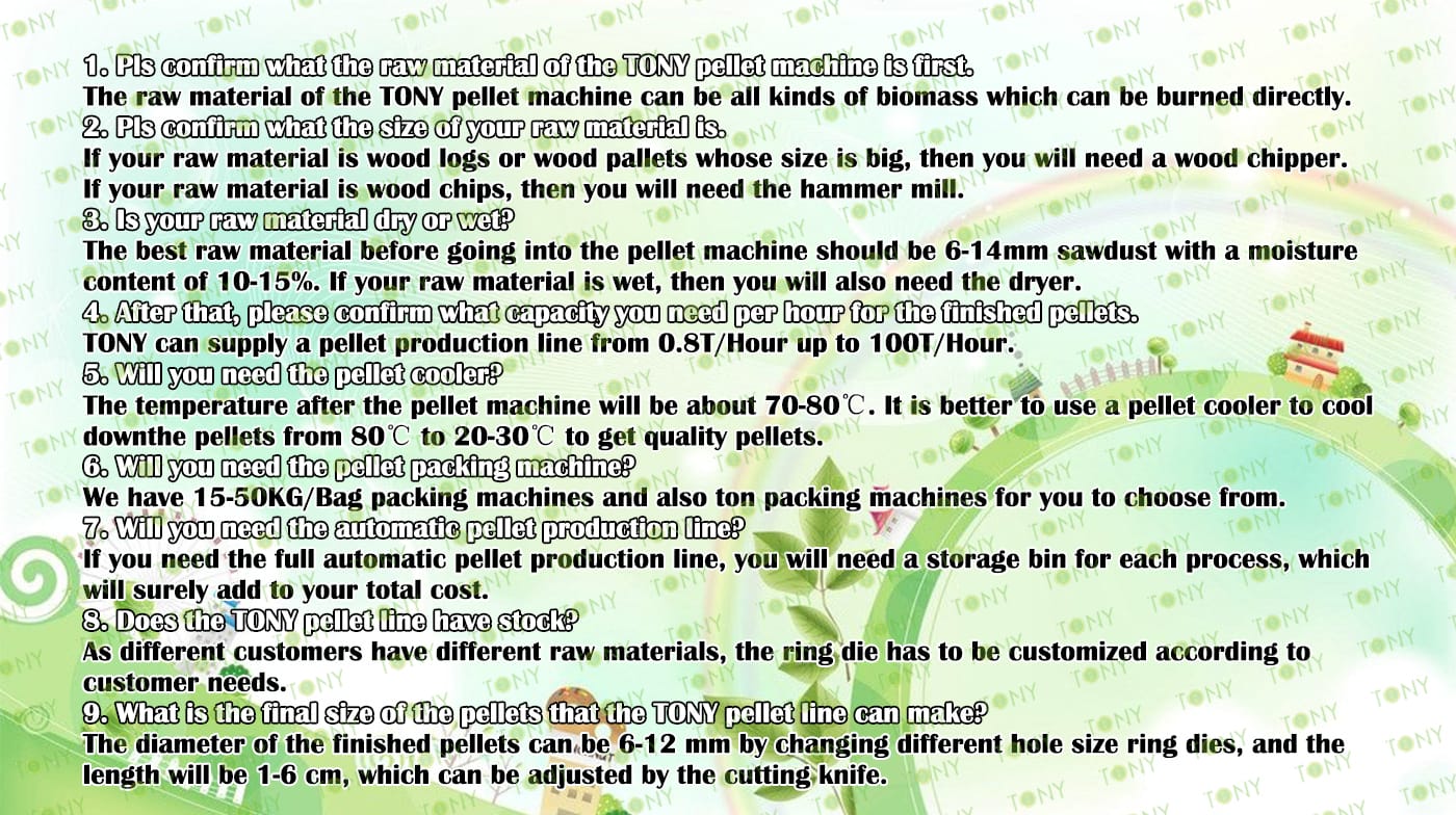 | Next, TONY Will Introduce To You All The Necessary Machinery That Will Be Used For The Whole Pellet Production Line. Some Machines Can Be Custom - Made By Customers According To Different Customers' Detailed Demands. Contact TONY For More Details, Including Quotation And Layout. | |||