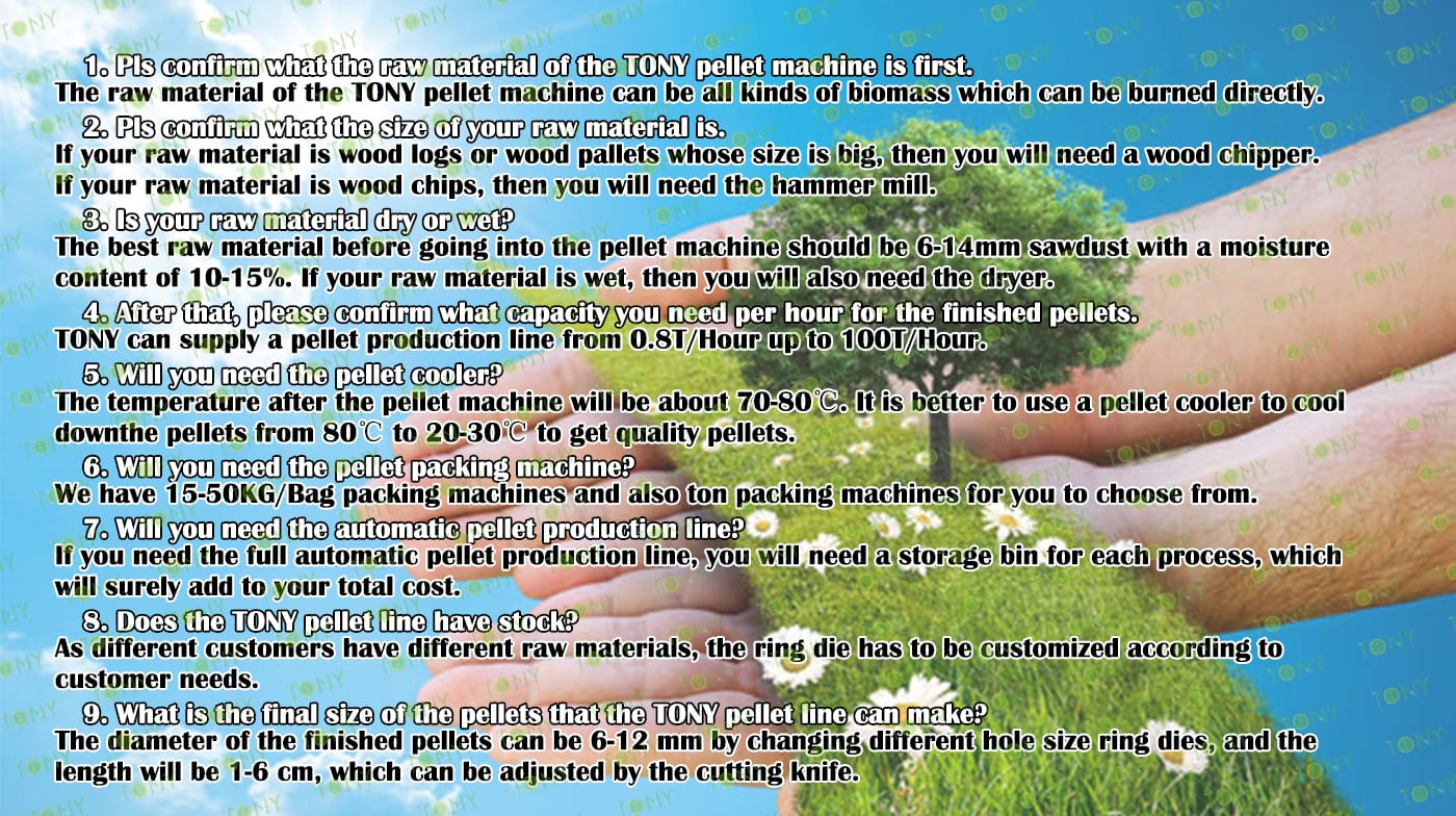 | Next, TONY Will Introduce To You All The Necessary Machinery That Will Be Used For The Whole Pellet Production Line. Some Machines Can Be Custom - Made By Customers According To Different Customers' Detailed Demands. Contact TONY For More Details, Including Quotation And Layout. | |||