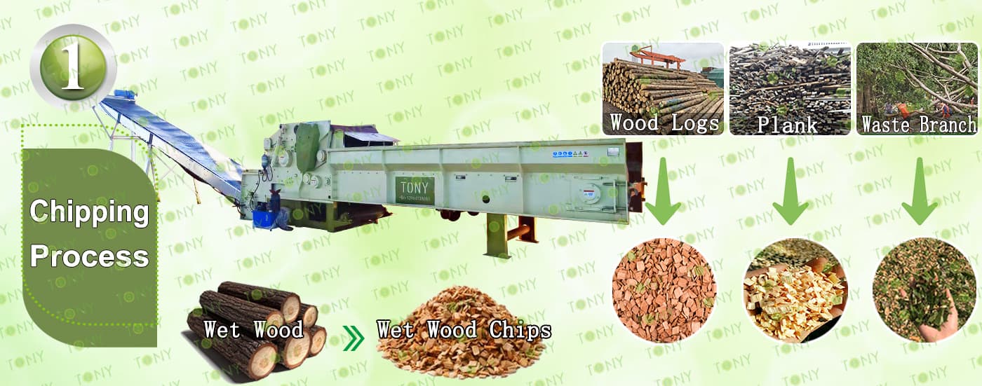 2. Raw materials: Wet wood log , branches, small - diameter logs, twigs, etc.