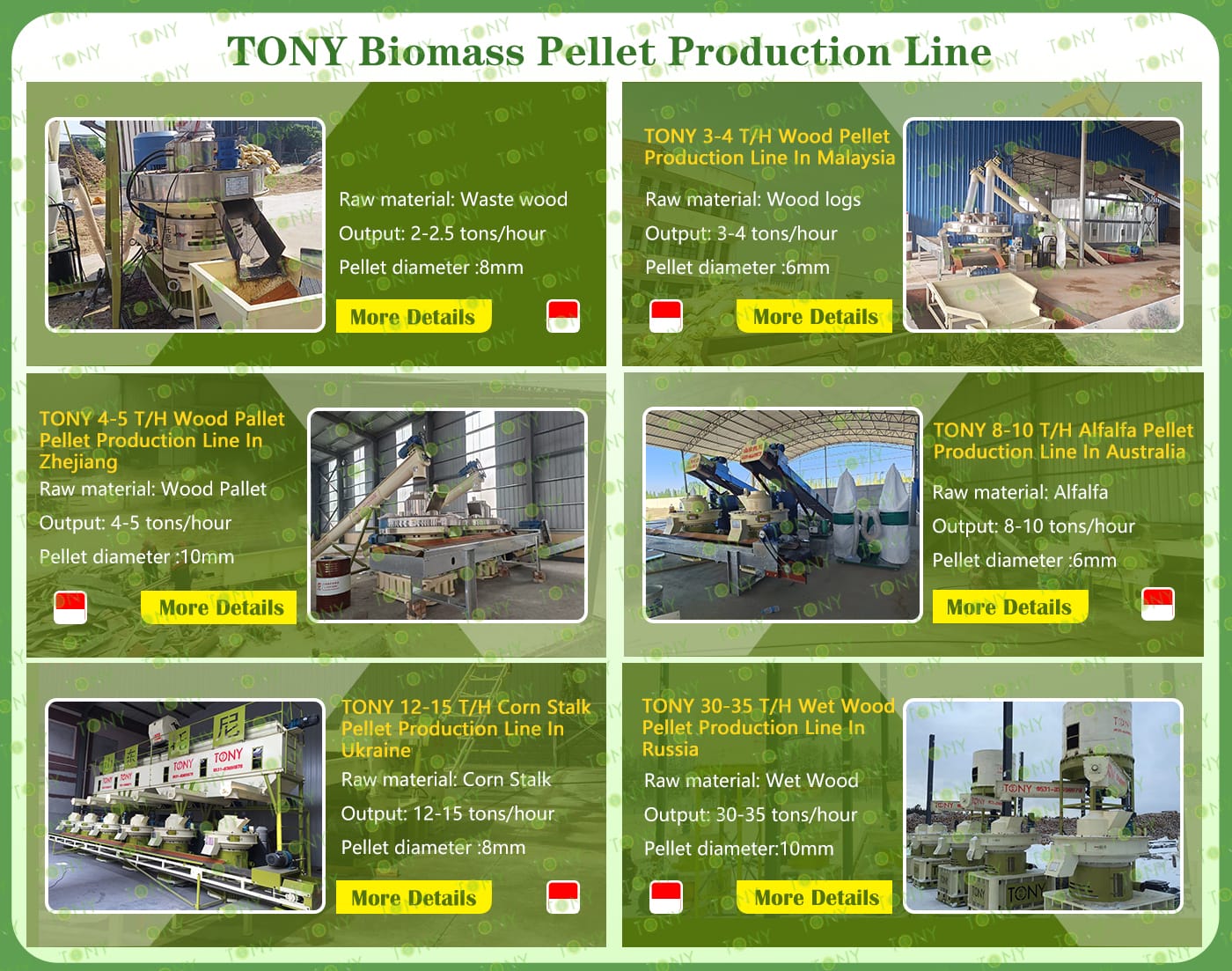 TONY Brand 48-60 Ton/Hour Wet Wood Log Pellet Manufacturing Plant can take wet wood, various types of wood - related biomass materials, such as branches, small - diameter logs, and wood shavings, with wet wood as the main raw material. After pretreatment and processing, it is solidified into high - density wood pellet fuel. This fuel is an ideal substitute for coal and oil and plays a role in energy conservation and emission reduction. At present, it has been widely used in regions rich in wood resources.