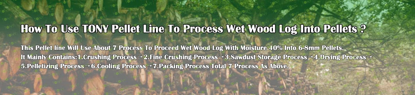 How to use the TONY pellet production line to make pellets from wet wood Log? The process mainly includes the following steps and equipment: 1. Use TONY comprehensive chipper to cut wet wood log with a diameter of less than 40 cm into wood chips 25 - 55 mm in length. 2. Use TONY effective hammer mill to crush the 25-55 mm wood chips into 8-14 mm sawdust. 3.Use TONY large hydraulic storage silo to storage 8-14 mm sawdust 4. Use TONY rotary drum dryer to dry the sawdust with a 40% moisture content down to a moisture content of 10%-15%. 5. Use TONY vertical ring die pellet machine to produce pellets with a diameter of 6-8 mm. 6. Use TONY galvanized cooler to cool the pellets from 80-90°C to 20-30°C. 7. Use TONY ton packing machine to pack the pellets into bags, each weighing 1ton. For more detailed information and quotations, you can contact TONY. TONY can provide all the above - mentioned products at highly competitive prices and with excellent quality. |