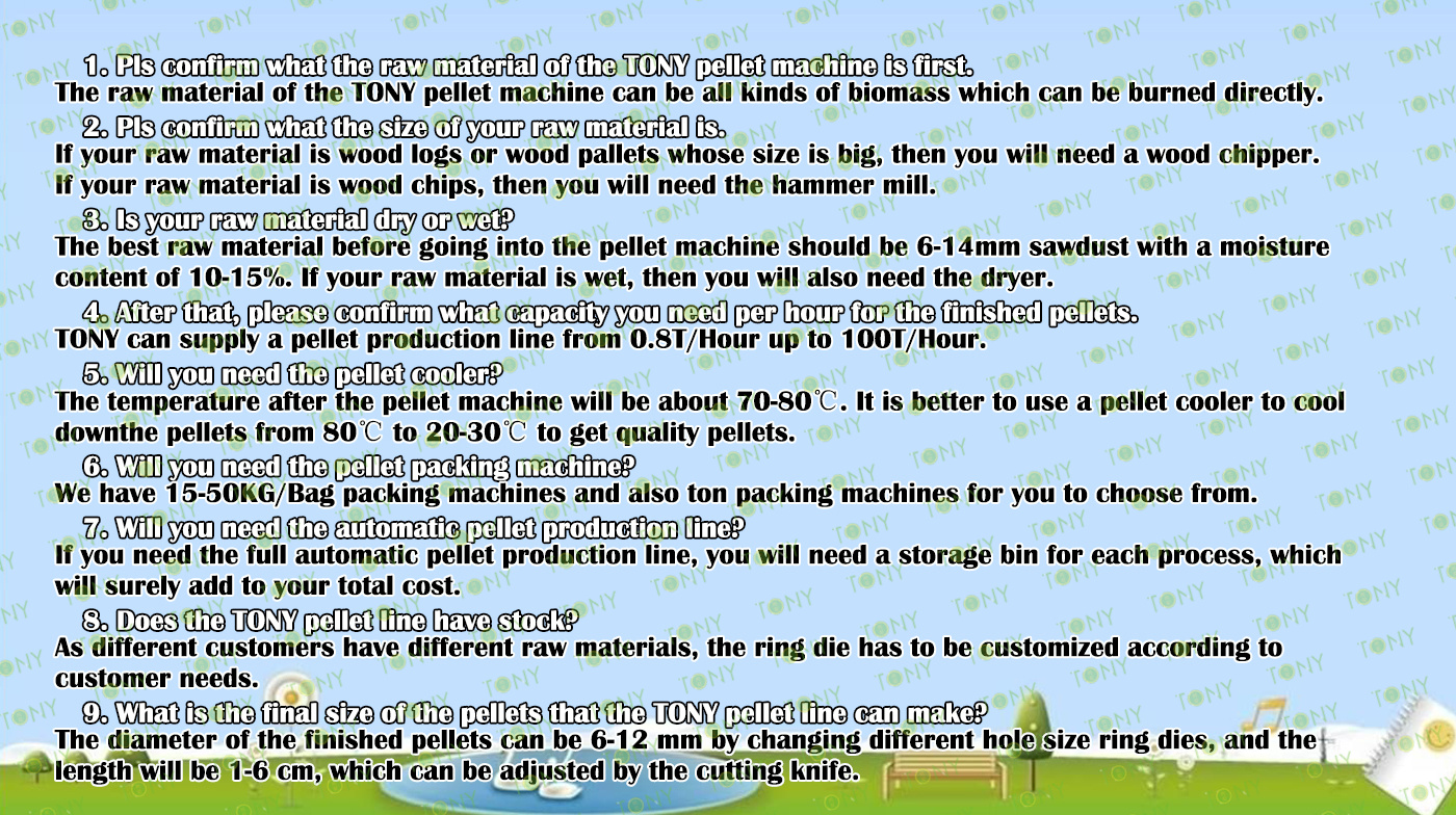 | Next, TONY Will Introduce To You All The Necessary Machinery That Will Be Used For The Whole Pellet Production Line. Some Machines Can Be Custom - Made By Customers According To Different Customers' Detailed Demands. Contact TONY For More Details, Including Quotation And Layout. | |||