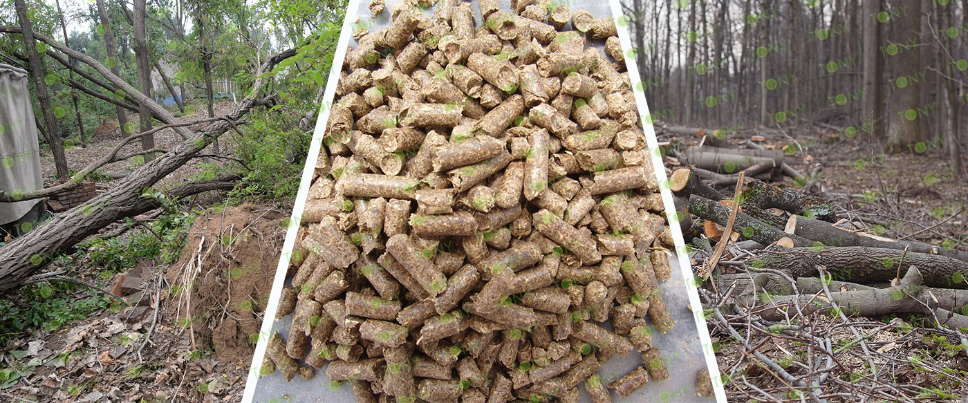Wet branches and trunks (moisture content 50%-60%) produced after forestry felling are crushed, dried and pelletized nearby in the forest area through mobile processing equipment, avoiding long-distance transportation of wet materials (high transportation costs and easy to rot). The pellets can be exported to biomass power plants or heating companies.