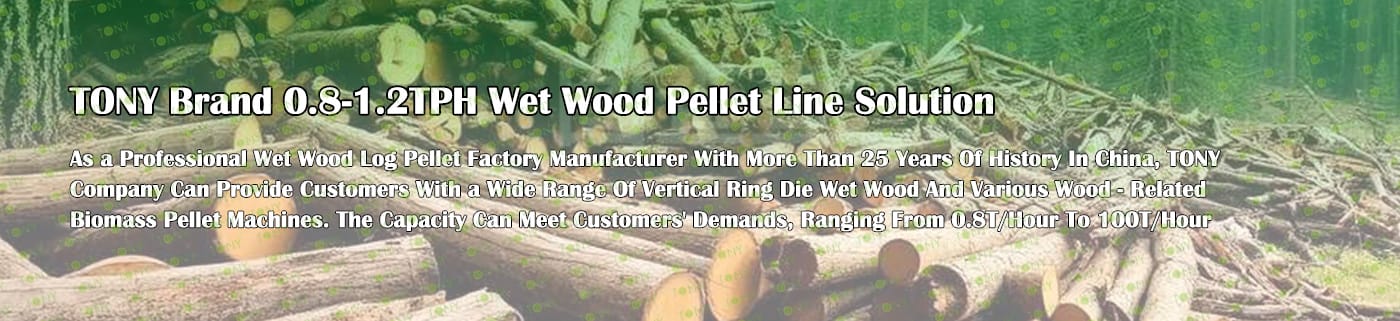 TONY Brand 0.8-1.2 Ton/Hour Wet Wood Log Pellet Manufacturing Plant can take wet wood, various types of wood - related biomass materials, such as branches, small - diameter logs, and wood shavings, with wet wood as the main raw material. After pretreatment and processing, it is solidified into high - density wood pellet fuel. This fuel is an ideal substitute for coal and oil and plays a role in energy conservation and emission reduction. At present, it has been widely used in regions rich in wood resources.