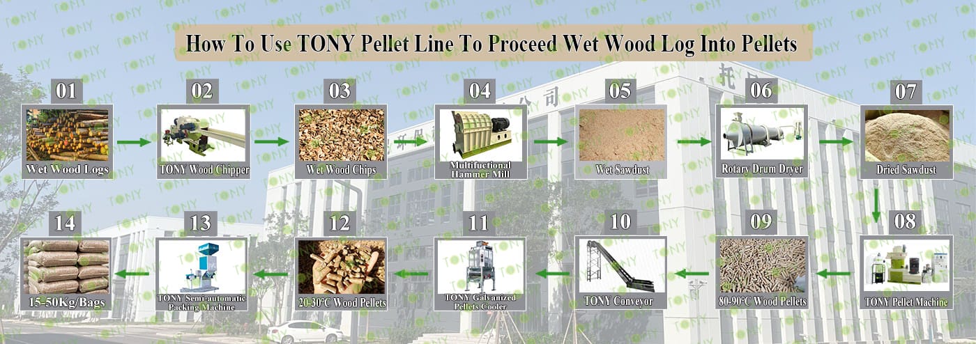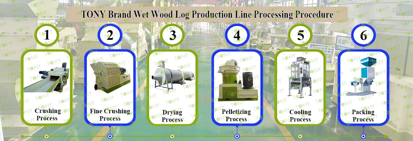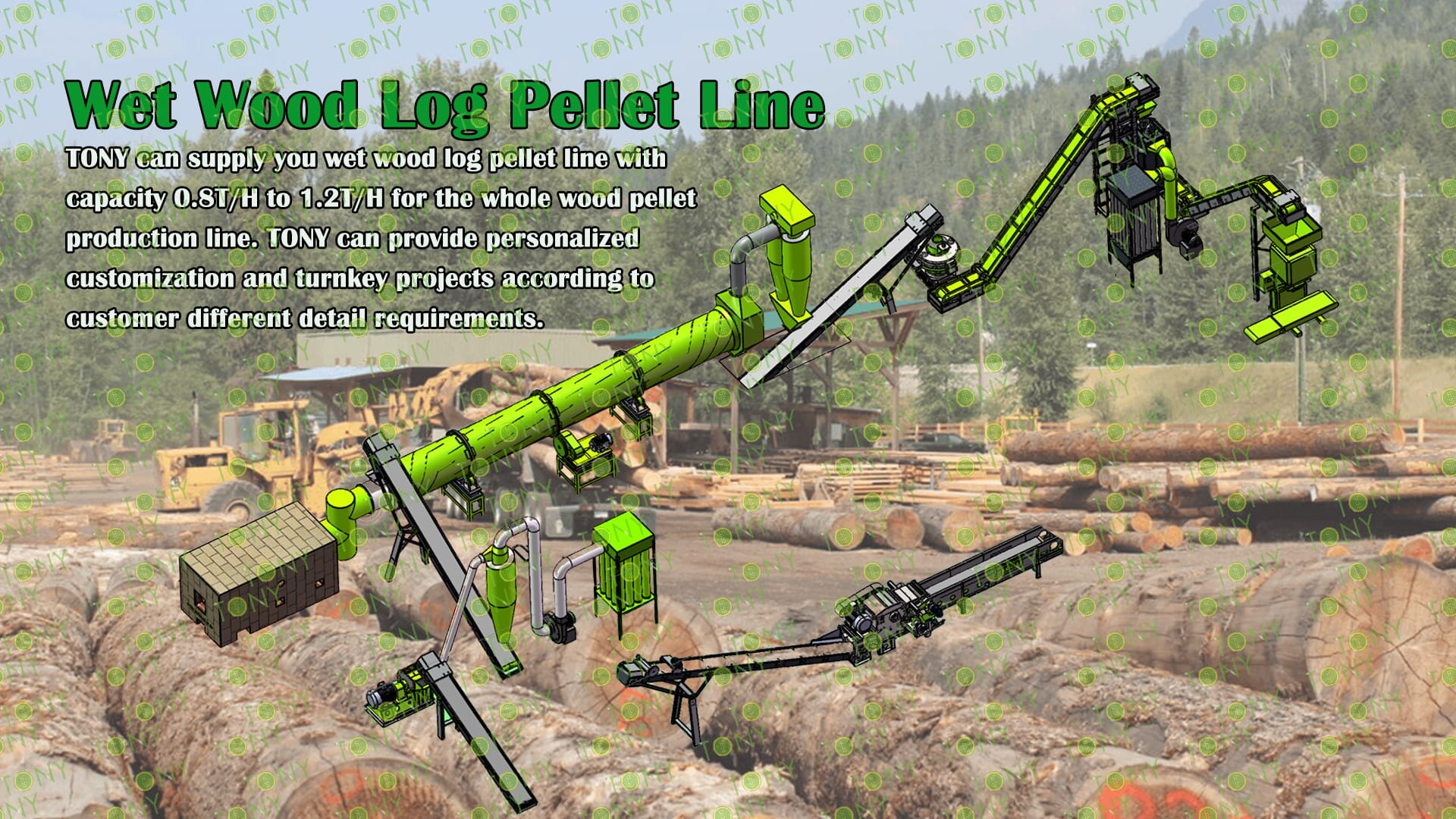 3.TONY Brand 0.8-1.2Ton/Hour Wet Wood Log Pellet Line Project Process