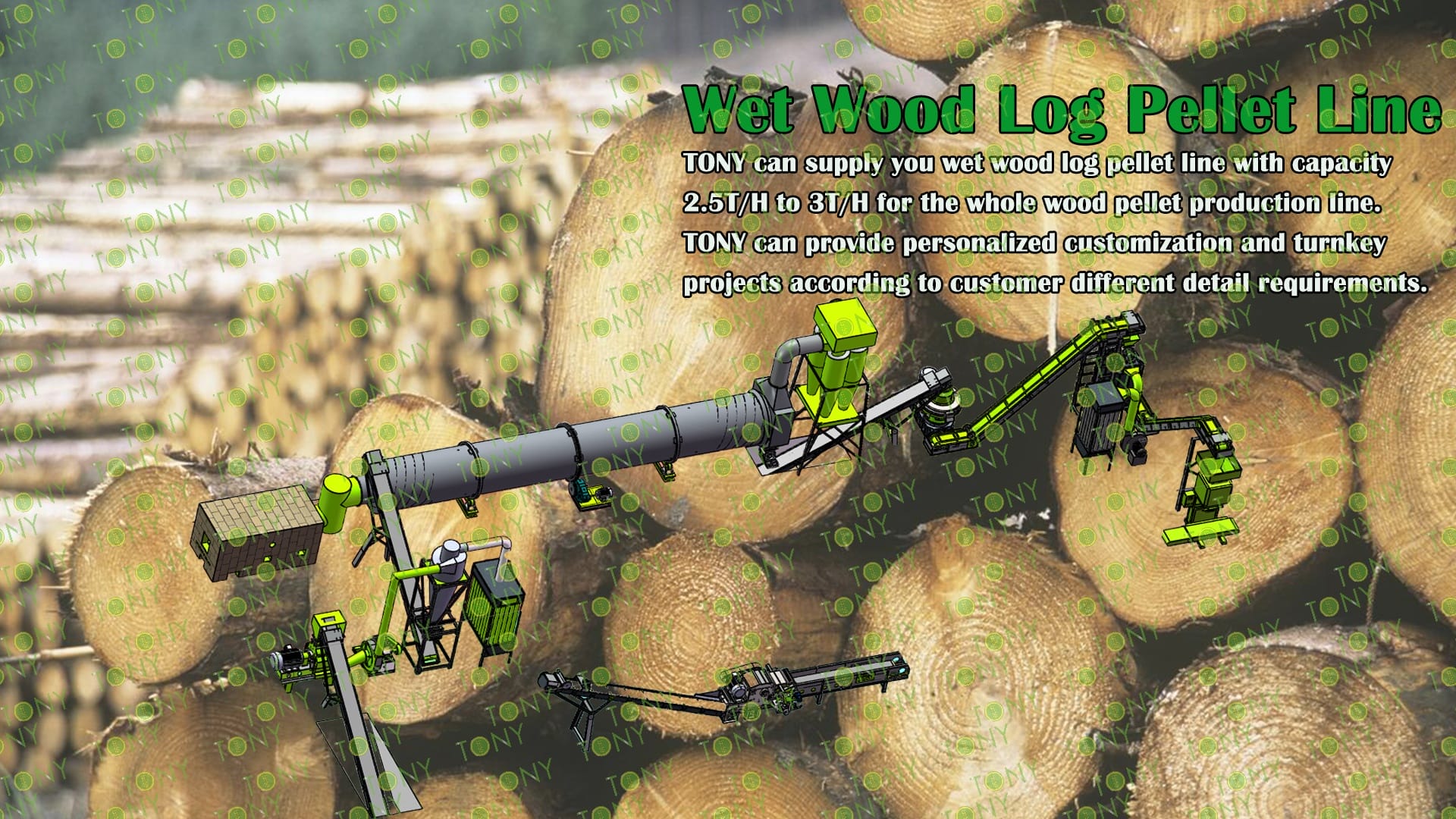 3.TONY Brand 2.5-3Ton /Hour Wet Wood Log Pellet Line Project Process