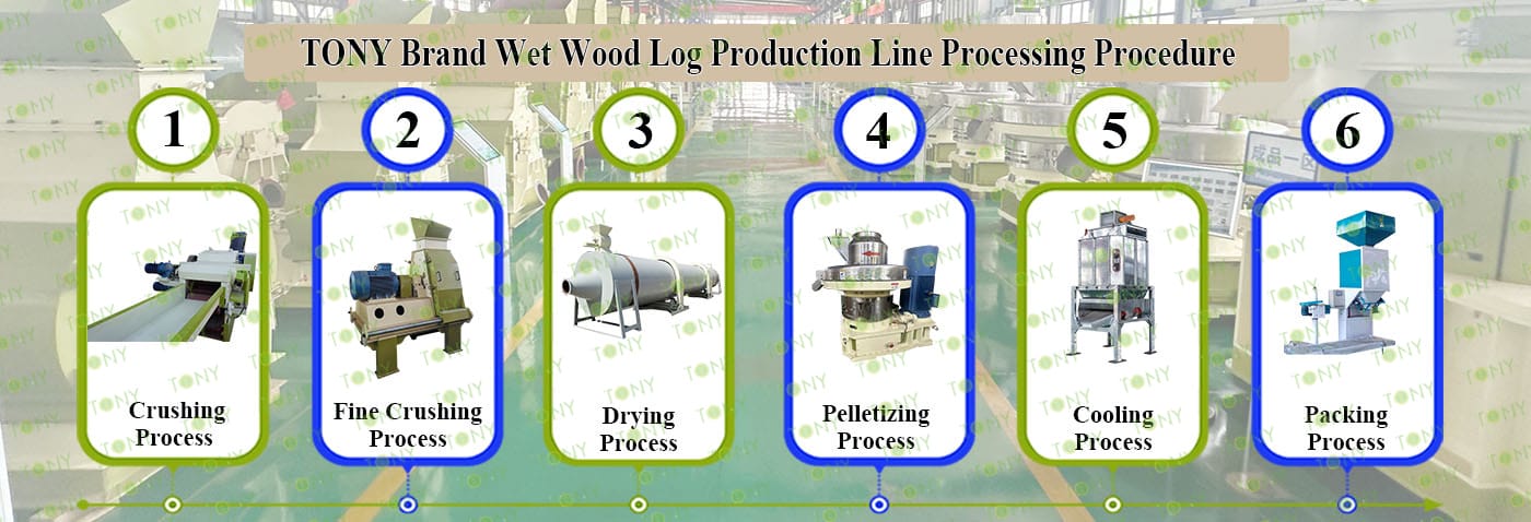 3.TONY Brand 2.8-3.2Ton/Hour Wet Wood Log Pellet Line Project Process