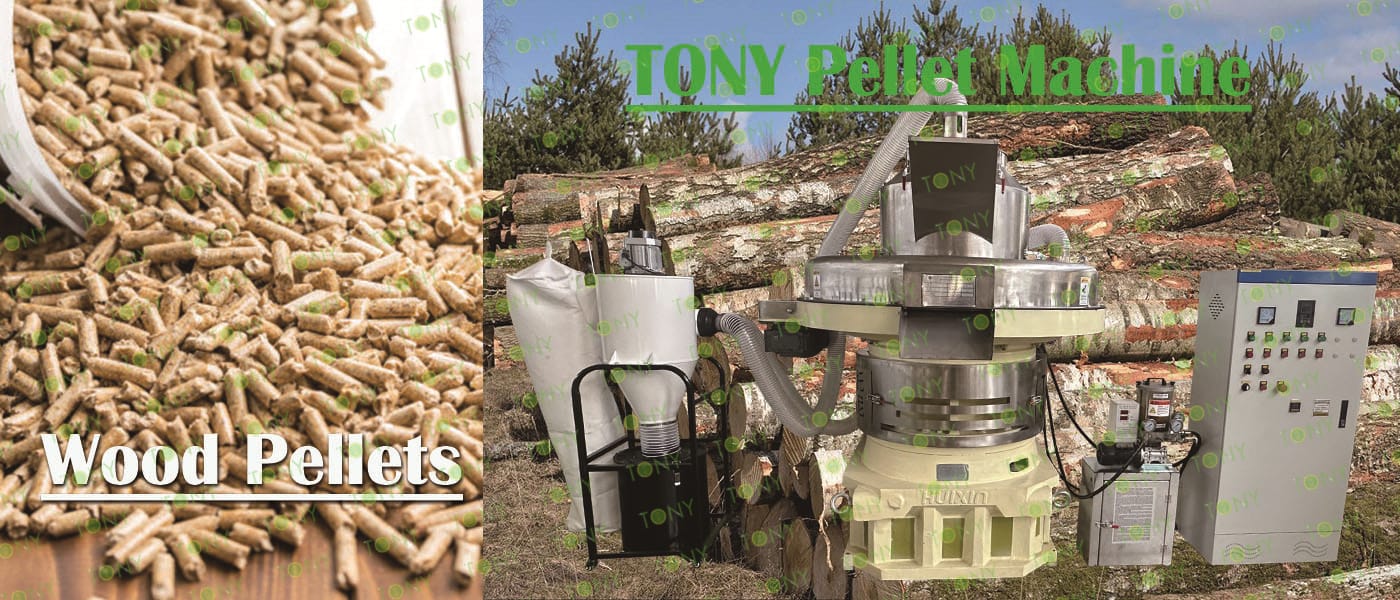 4:Main Machine: Wood Chipper , Hammer Mill, Rotary Drum Dryer, TONY Pellet Machine TYJ760-Ⅲ-185KW, Pellet Cooler, Packaging Machine And Belt Conveyors