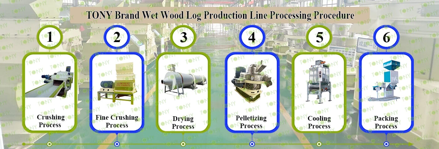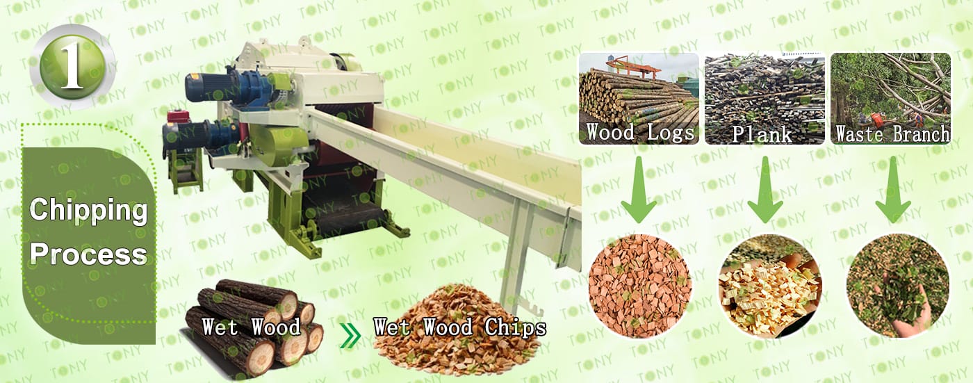 3.TONY Brand 3-4 Ton /Hour Wet Wood Log Pellet Line Project Process
