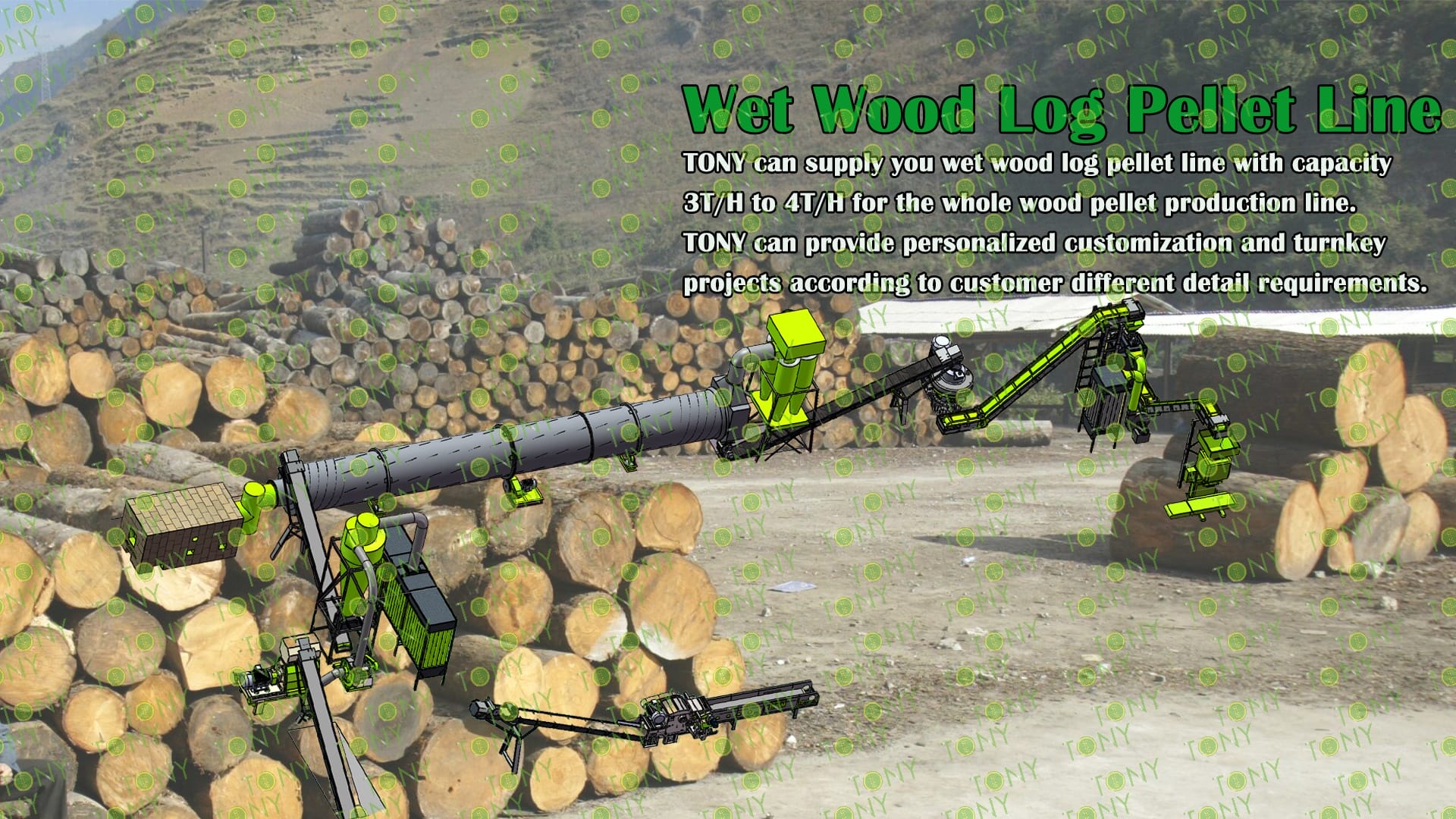 3.TONY Brand 3-4Ton /Hour Wet Wood Log Pellet Line Project Process