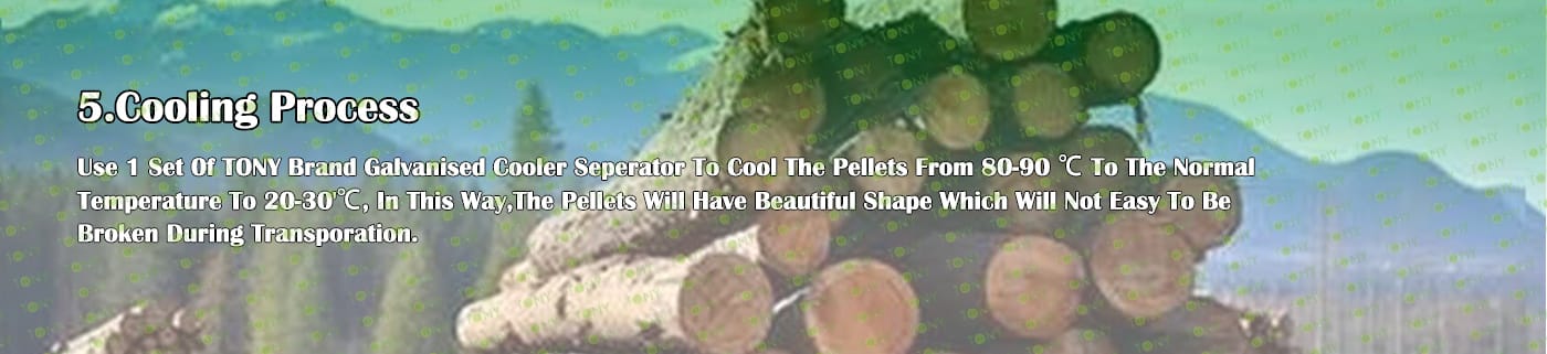 4.Main Machine: Wood Chipper,Hammer Mill, Rotary Drum Dryer,TONY Pellet MachineTYJ551-Ⅲ-110KW,Pellets Cooler,Packing Machine And Belt Conveyors