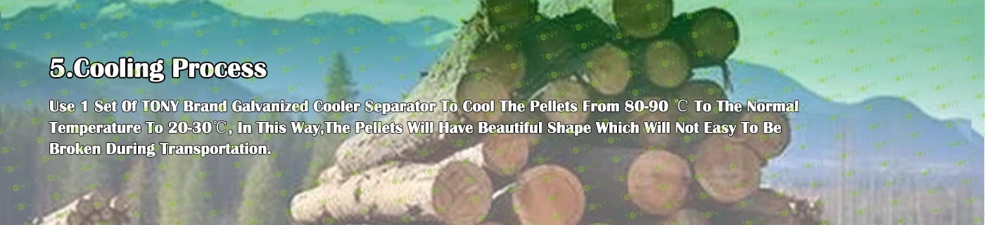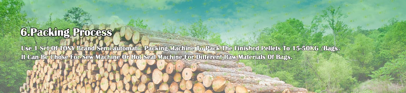 6. Main Equipment: Wood Chipper TPQ216 - 55KW, Effective Hammer Mill-TFD75*100-110KW, Rotary Drum Dryer-1.8*18m, TONY Pellet Machine TYJ551-Ⅲ-110KW, Pellet Cooler, Small Packaging Machine and Belt Conveyors