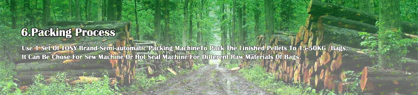 6. Main Equipment: Wood Chipper TPQ216 - 55KW, Effective Hammer Mill-TFD75*100-110kw, Rotary Drum Dryer-1.8*18m, TONY Pellet Machine TYJ860 - Ⅲ - 220kw, Pellet Cooler, Small Packaging Machine and Belt Conveyors