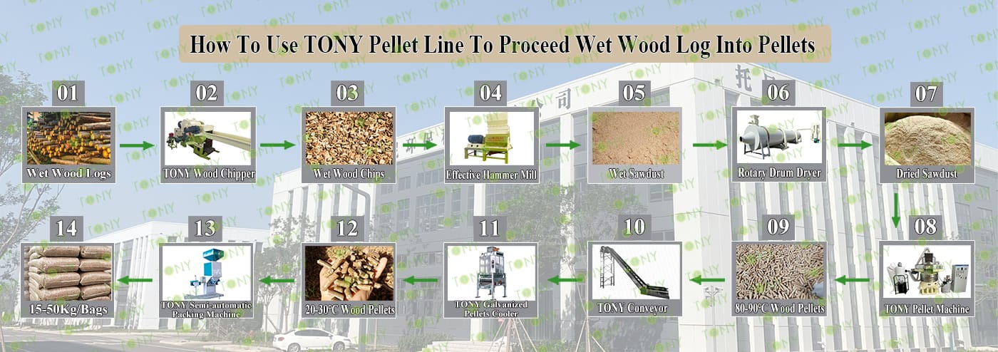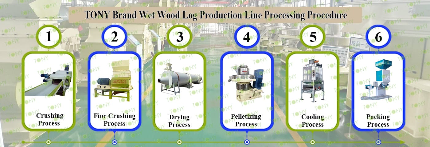 3.TONY Brand 3-3.5Ton/Hour Wet Wood Log Pellet Line Project Process