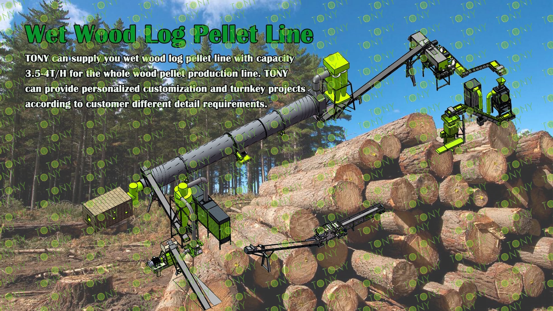 3. TONY Brand 3.5-4Ton /Hour Wet Wood Log Pellet Line Project Process