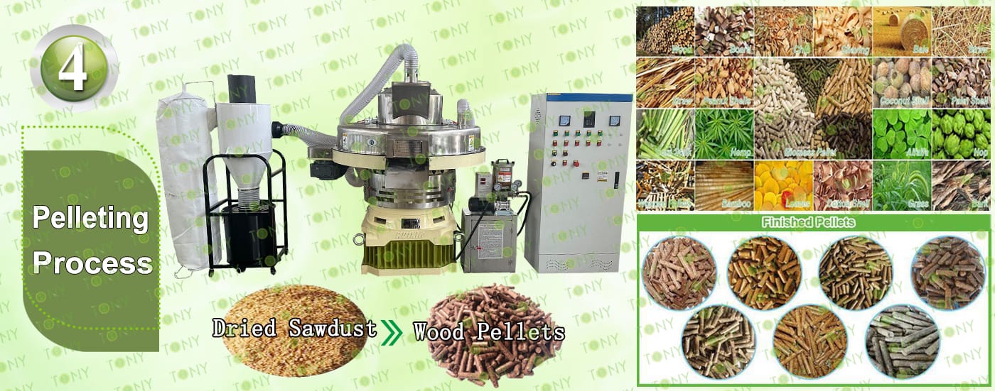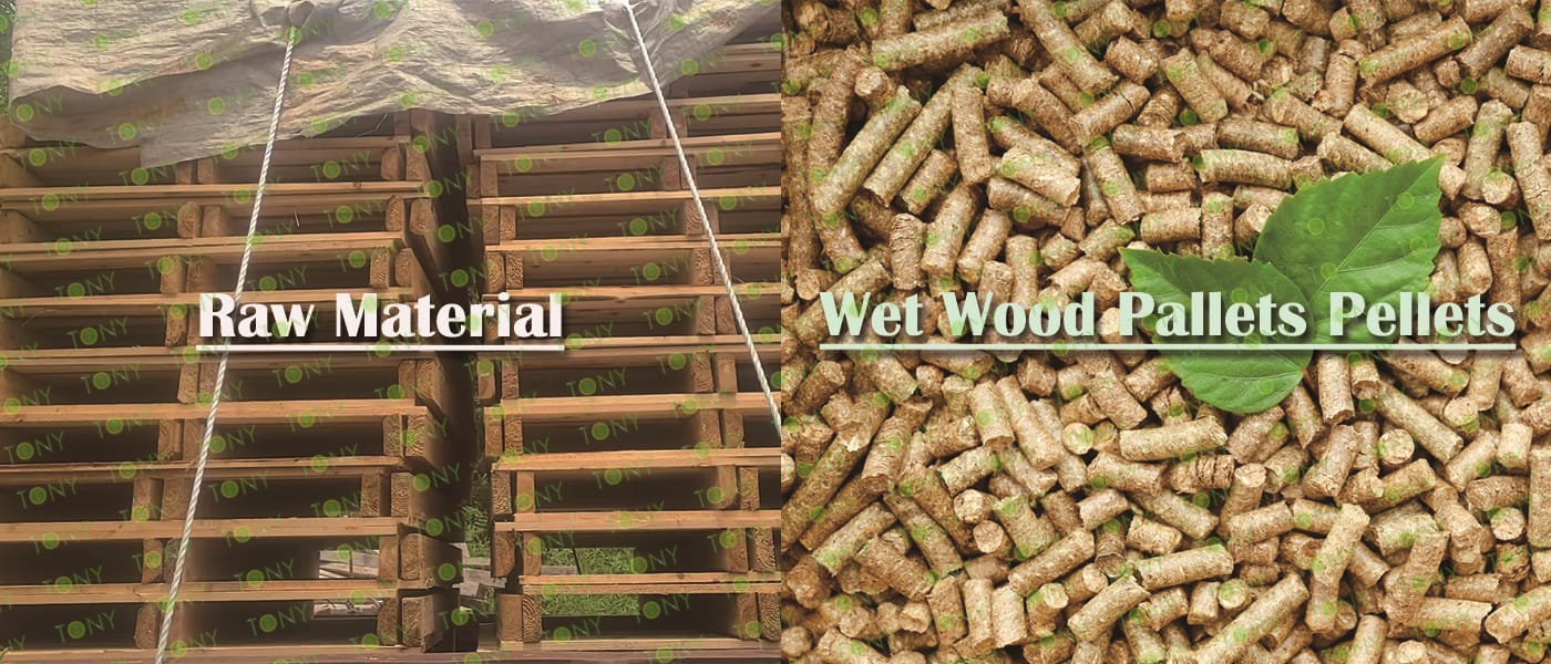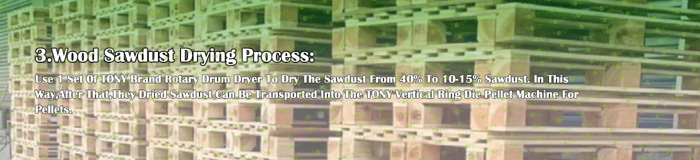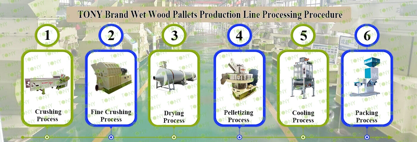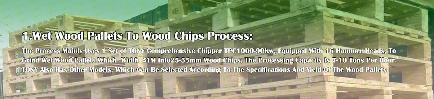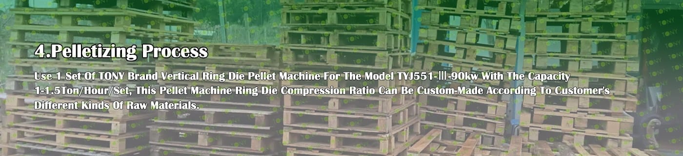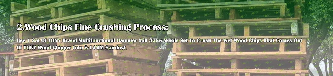 3.TONY Brand 1-1.5Ton /Hour Wet Wood Pallets Pellet Line Project Process