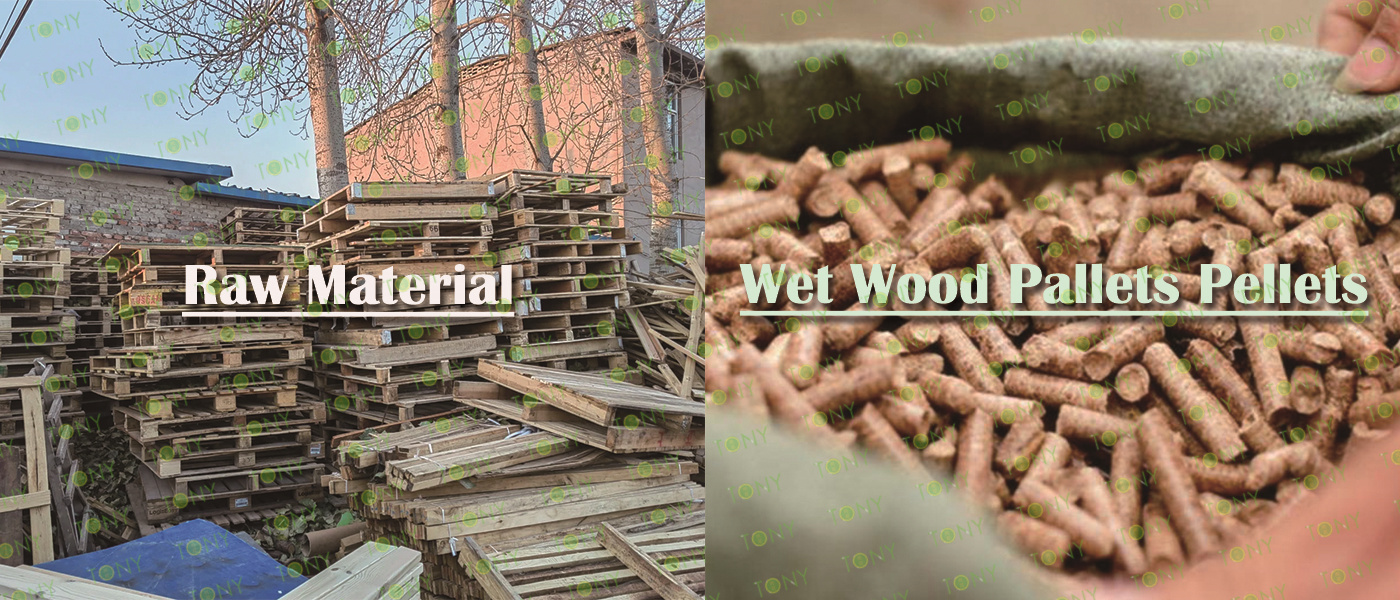 TONY Brand 1.5-2 Ton/Hour Wet Wood Pallets Pellet Manufacturing Plant can take wet wood pallets, various types of wood - related biomass materials, such as branches, small - diameter logs, and wood shavings, with wet wood as the main raw material. After pretreatment and processing, it is solidified into high - density wood pellet fuel. This fuel is an ideal substitute for coal and oil and plays a role in energy conservation and emission reduction. At present, it has been widely used in regions rich in wood resources.