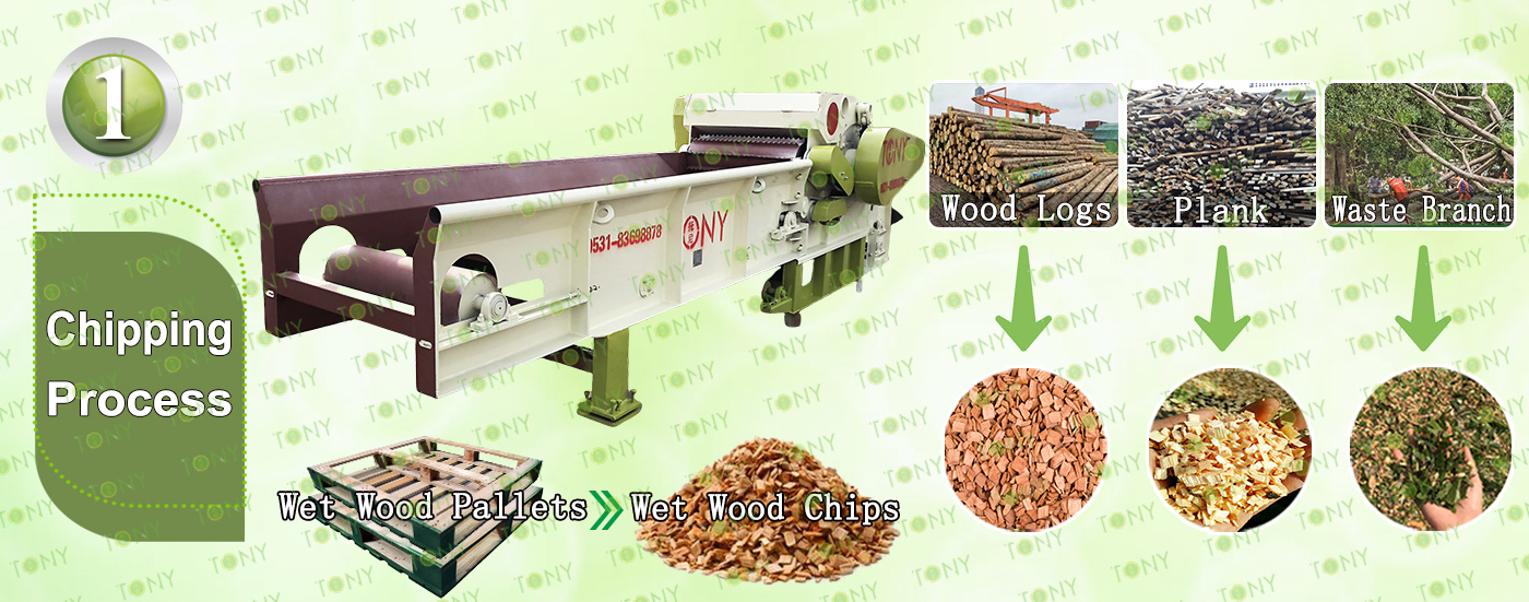 3.TONY Brand2.8-3.2 Ton /Hour Wet Wood Pallets Pellet Line Project Process