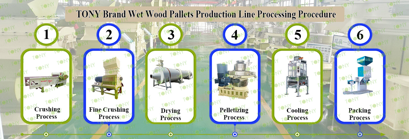 3.TONY Brand 3-3.5 Ton /Hour Wet Wood Pallets Pellet Line Project Process