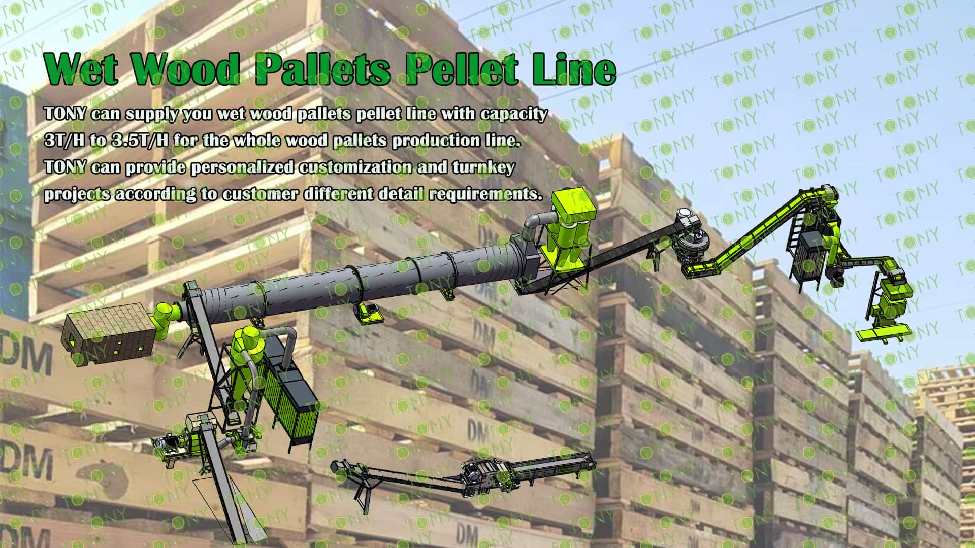 3.TONY Brand 3-3.5Ton /Hour Wet Wood Pallets Pellet Line Project Process
