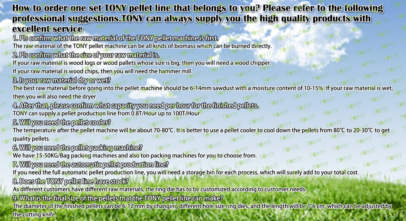 | Next, TONY Will Introduce To You All The Necessary Machinery That Will Be Used For The Whole Pellet Production Line. Some Machines Can Be Custom - Made By Customers According To Different Customers' Detailed Demands. Contact TONY For More Details, Including Quotation And Layout. | ||