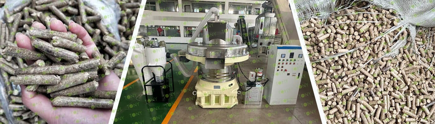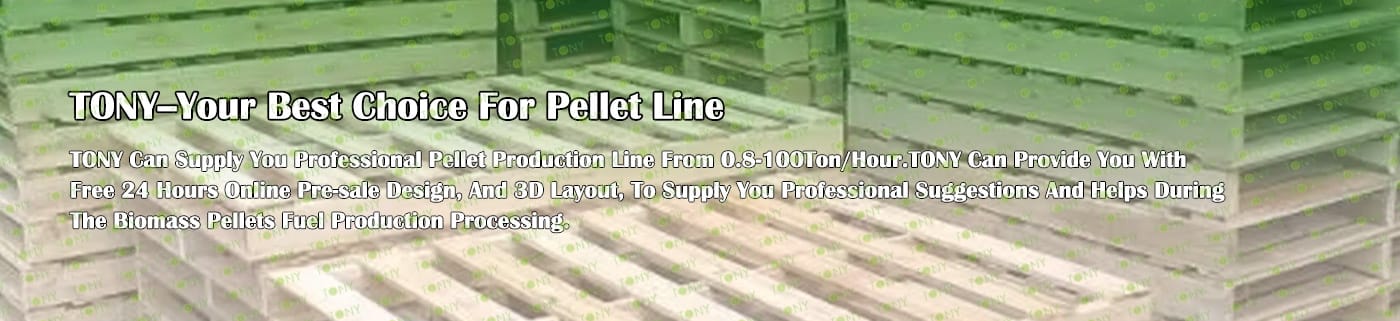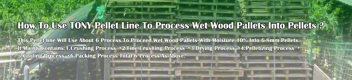How to use the TONY pellet production line to make pellets from wet wood pallets? The process mainly includes the following steps and equipment: 1. Use TONY comprehensive chipper to grind wet wood pallets with width 1m into wood chips 25 - 55 mm in length. 2. Use TONY Effective Hammer mill to crush the 25-55 mm wood chips into 8-14 mm sawdust. 3. Use TONY rotary drum dryer to dry the sawdust with a 40% moisture content down to a moisture content of 10%-15%. 4. Use TONY vertical ring die pellet machine to produce pellets with a diameter of 6-8 mm. 5. Use TONY galvanized cooler to cool the pellets from 80-90°C to 20-30°C. 6. Use TONY semi - automatic packing machine to pack the pellets into bags, each weighing 15-50 kg. For more detailed information and quotations, you can contact TONY. TONY can provide all the above - mentioned products at highly competitive prices and with excellent quality. |