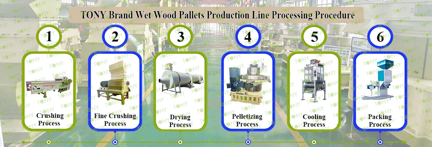 3.TONY Brand 4-5 Ton /Hour Wet Wood Pallets Pellet Line Project Process