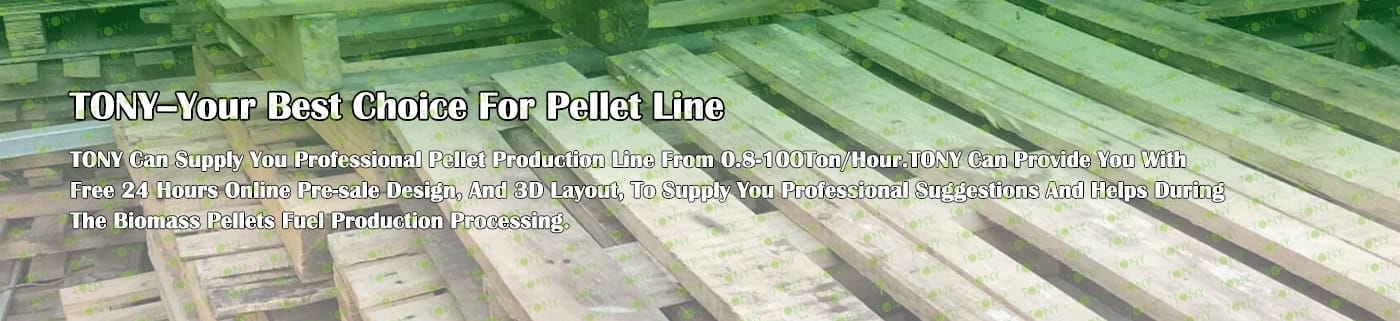 How to use the TONY pellet production line to make pellets from wet wood pallets? The process mainly includes the following steps and equipment: 1. Use TONY comprehensive chipper to grind wet wood pallets with width 1m into wood chips 25 - 55 mm in length. 2. Use TONY effective hammer mill to crush the 25-55 mm wood chips into 8-14 mm sawdust. 3. Use TONY rotary drum dryer to dry the sawdust with a 40% moisture content down to a moisture content of 10%-15%. 4. Use TONY vertical ring die pellet machine to produce pellets with a diameter of 6-8 mm. 5. Use TONY galvanized cooler to cool the pellets from 80-90°C to 20-30°C. 6. Use TONY semi - automatic packing machine to pack the pellets into bags, each weighing 15-50 kg. For more detailed information and quotations, you can contact TONY. TONY can provide all the above - mentioned products at highly competitive prices and with excellent quality. |